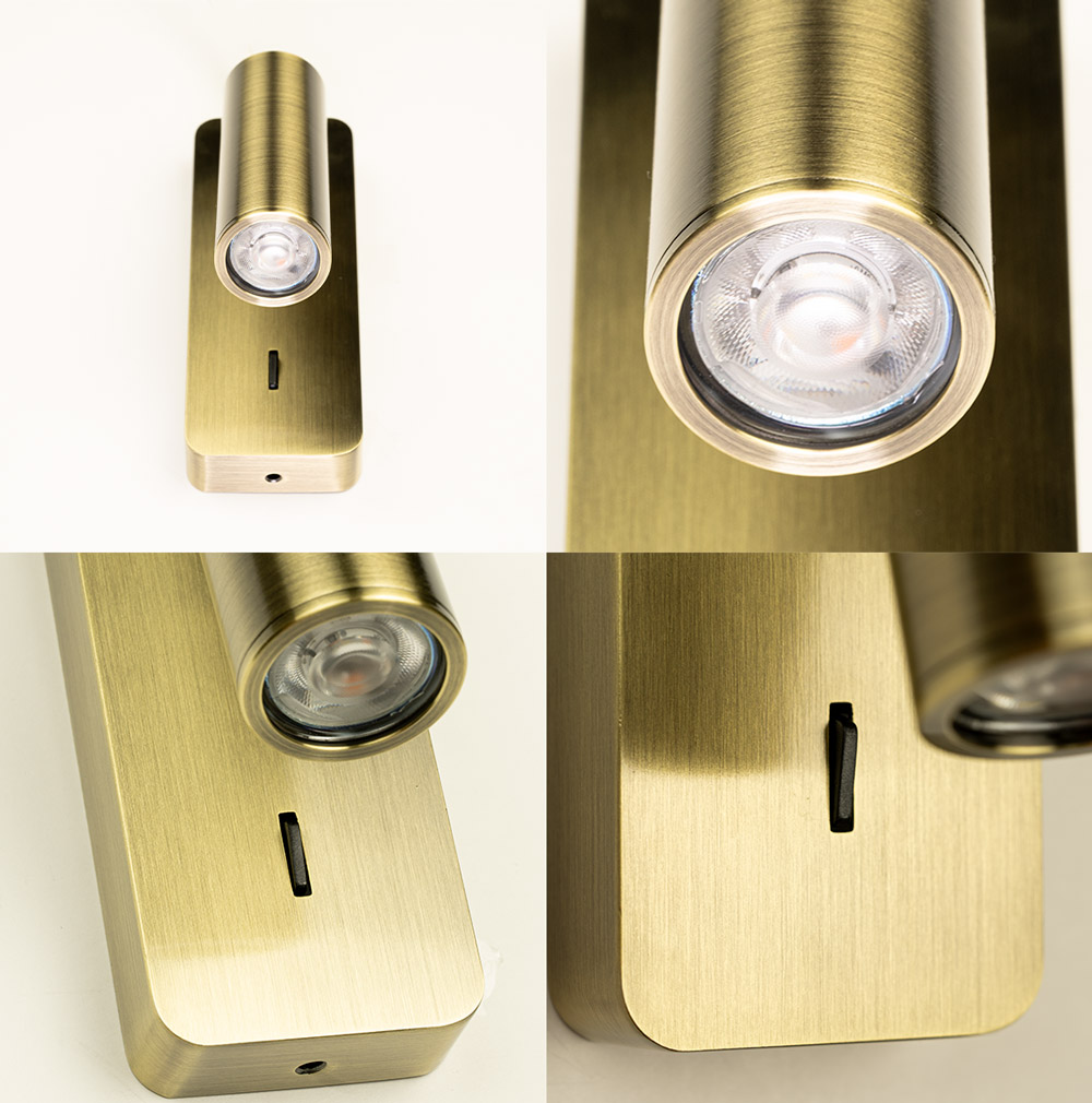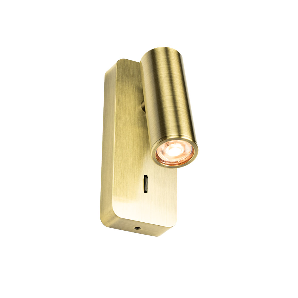 • Compacte wandlamp in antique brass • Verstelbare spot: kantelbaar en draaibaar • GU10 mini fitting – lichtbron naar keuze • Schakelaar op de lamp • Ideaal als leeslamp of accentverlichting
