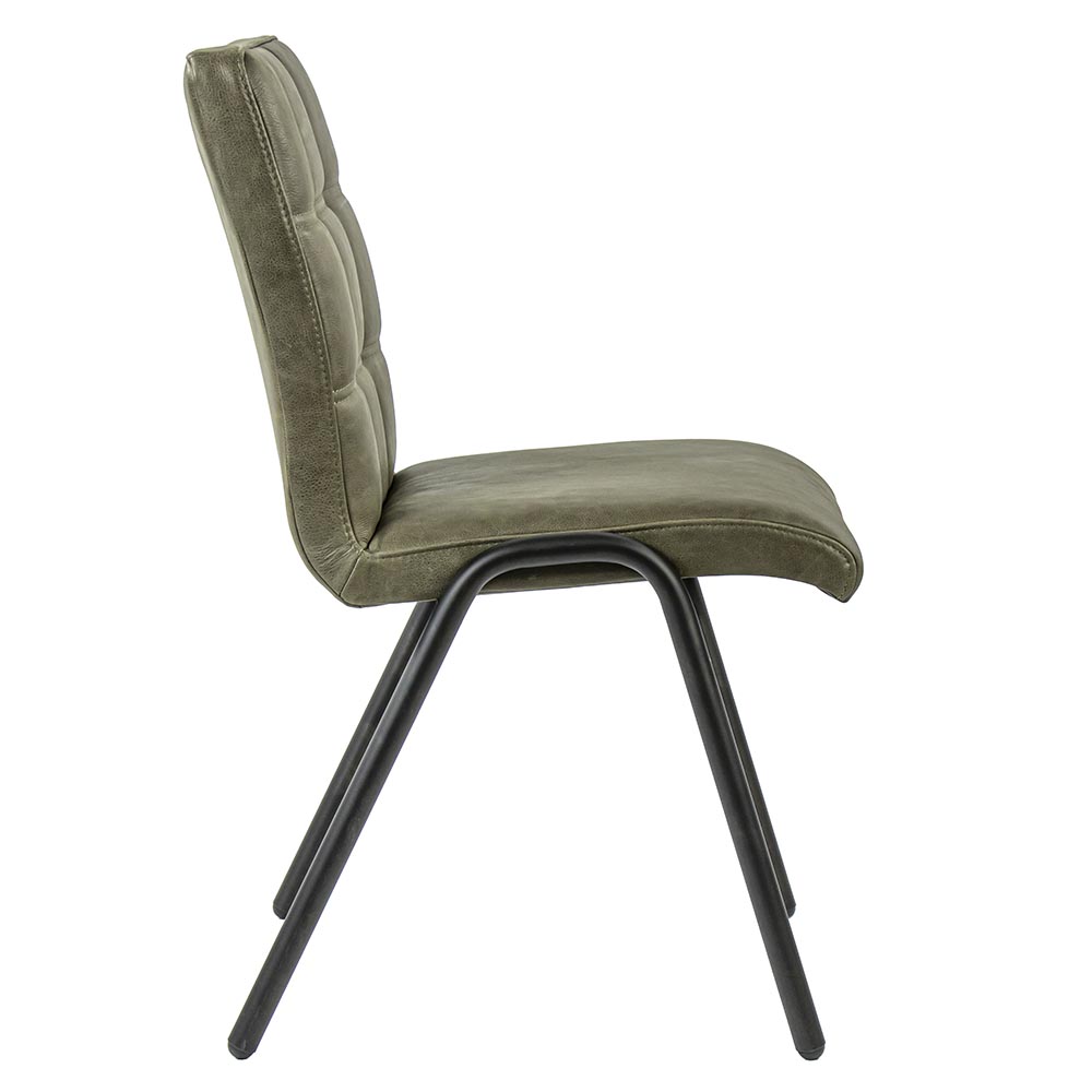 Homepagina / Wonen / Eetkamerstoelen / Olijf groene eettafelstoel leder met zwarte pootjes