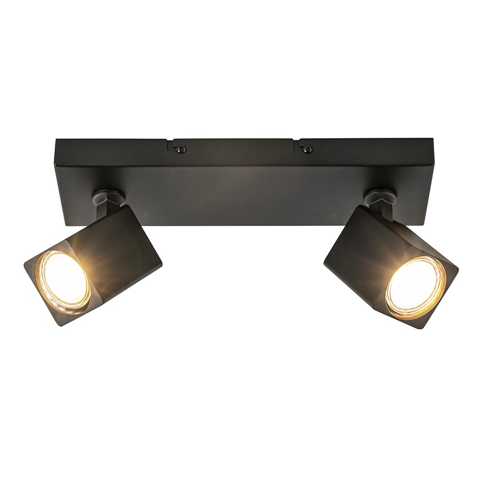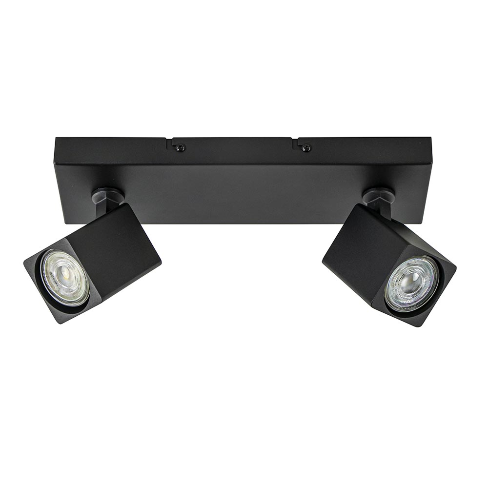 – afm: 30x10x14 cm – bevestiging: 30x10x2,5 cm – spots: 6x6x8 cm – metaal – zwart – verstelbaar – exclusief lichtbron (2x GU10) – dimbaar (exclusief)