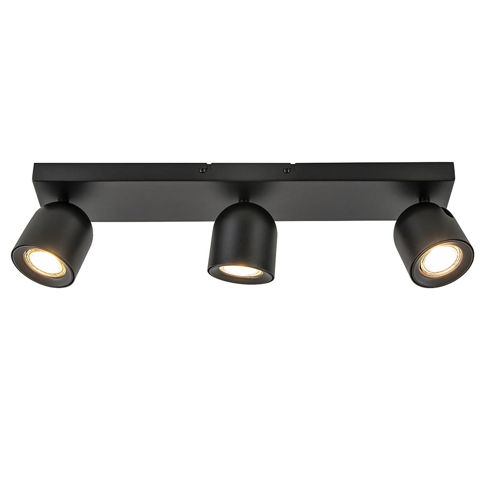 Ideaal voor in een hal, slaapkamer of gewoon als extra sfeer in de woonkamer. Deze 3-lichts opbouwspot kan het allemaal. De spots zijn bevestigd op een langwerpige plafondplaat en zijn volledig naar wens te verstellen door deze te draaien en/of te kantelen. De zwarte spots worden geleverd exclusief lichtbron (GU10). De lichtbron wordt gemakkelijk geplaatst door het binnenkapje te verwijderen en weer terug te plaatsen. Leuk aan deze plafondspot is dat er ook een gouden kapje mee wordt geleverd zodat u zelf kunt kiezen welke u wilt toepassen.