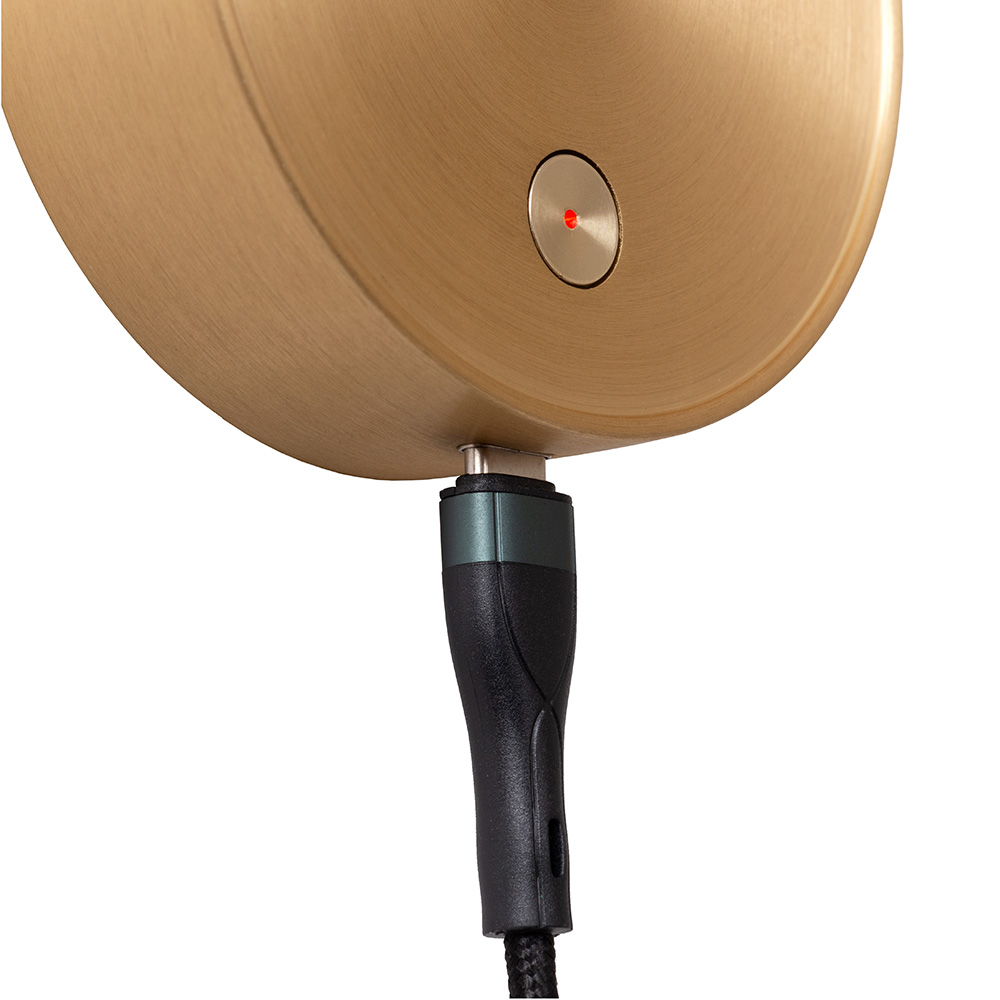 Details: – Afmeting: 2,5×8,5×42,1 cm – Bevestiging: Ø8,5×2,5cm – Kleur: Goud & zwart – Materiaal: Metaal – Lichtbron: Geïntegreerde LED (Incl.) – Flexibele arm voor gerichte verlichting – Met aan/uit-touchschakelaar – Voorzien van USB-oplaadpoort – Gewicht: 2,8kg
