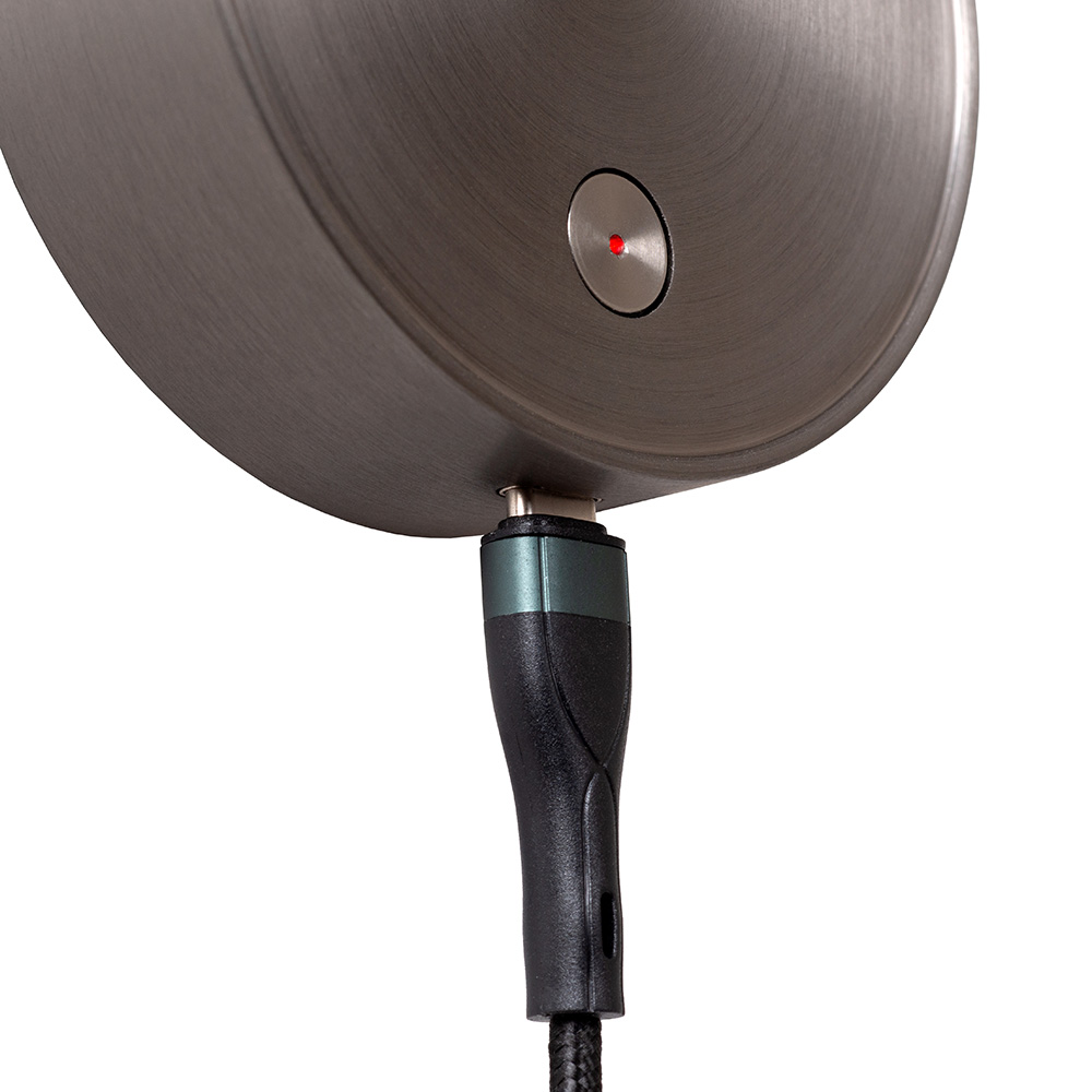 Details: – Afmeting: 2,5×8,5×42,1 cm – Bevestiging: Ø8,5×2,5cm – Kleur: Grijs & zwart – Materiaal: Metaal – Lichtbron: Geïntegreerde LED (Incl.) – Flexibele arm voor gerichte verlichting – Met aan/uit-touchschakelaar – Voorzien van USB-oplaadpoort – Gewicht: 280g