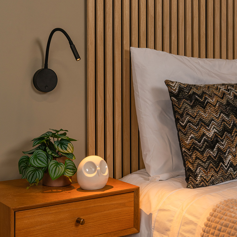 Deze moderne wandlamp met flexibele arm is de ideale leeslamp voor naast het bed of bij je favoriete leesplek. Het minimalistische ontwerp in matzwart met een slanke, gerichte LED-spot zorgt voor gericht leeslicht zonder te verblinden. Dankzij de buigbare arm kun je het licht precies richten waar jij het nodig hebt. Extra handig: de lamp is voorzien van een USB-poort waarmee je eenvoudig de wandlamp kunt opladen. De bediening is simpel dankzij de geïntegreerde aan/uit-knop. Deze wandlamp werkt via netstroom en is makkelijk te monteren aan de muur.