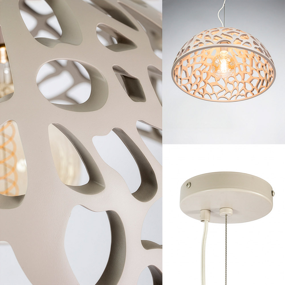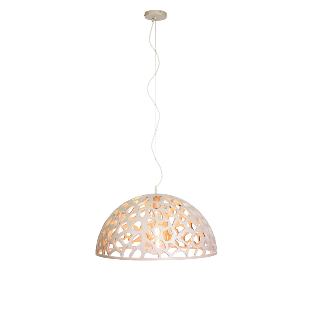De The Open hanglamp is een moderne blikvanger met een unieke opengewerkte koepelkap. Het speelse patroon zorgt voor een prachtig lichtspel op muur en plafond, terwijl de ruime vorm juist rust en elegantie toevoegt aan je interieur. Dankzij het extra lange snoer van maar liefst 3 meter is deze lamp ideaal voor hoge plafonds, vides of boven een royale eettafel.