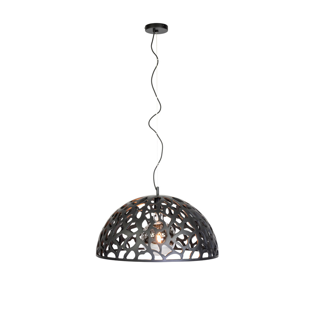 De The Open hanglamp is een moderne blikvanger met een unieke opengewerkte koepelkap. Het speelse patroon zorgt voor een prachtig lichtspel op muur en plafond, terwijl de ruime vorm juist rust en elegantie toevoegt aan je interieur. Dankzij het extra lange snoer van maar liefst 3 meter is deze lamp ideaal voor hoge plafonds, vides of boven een royale eettafel.