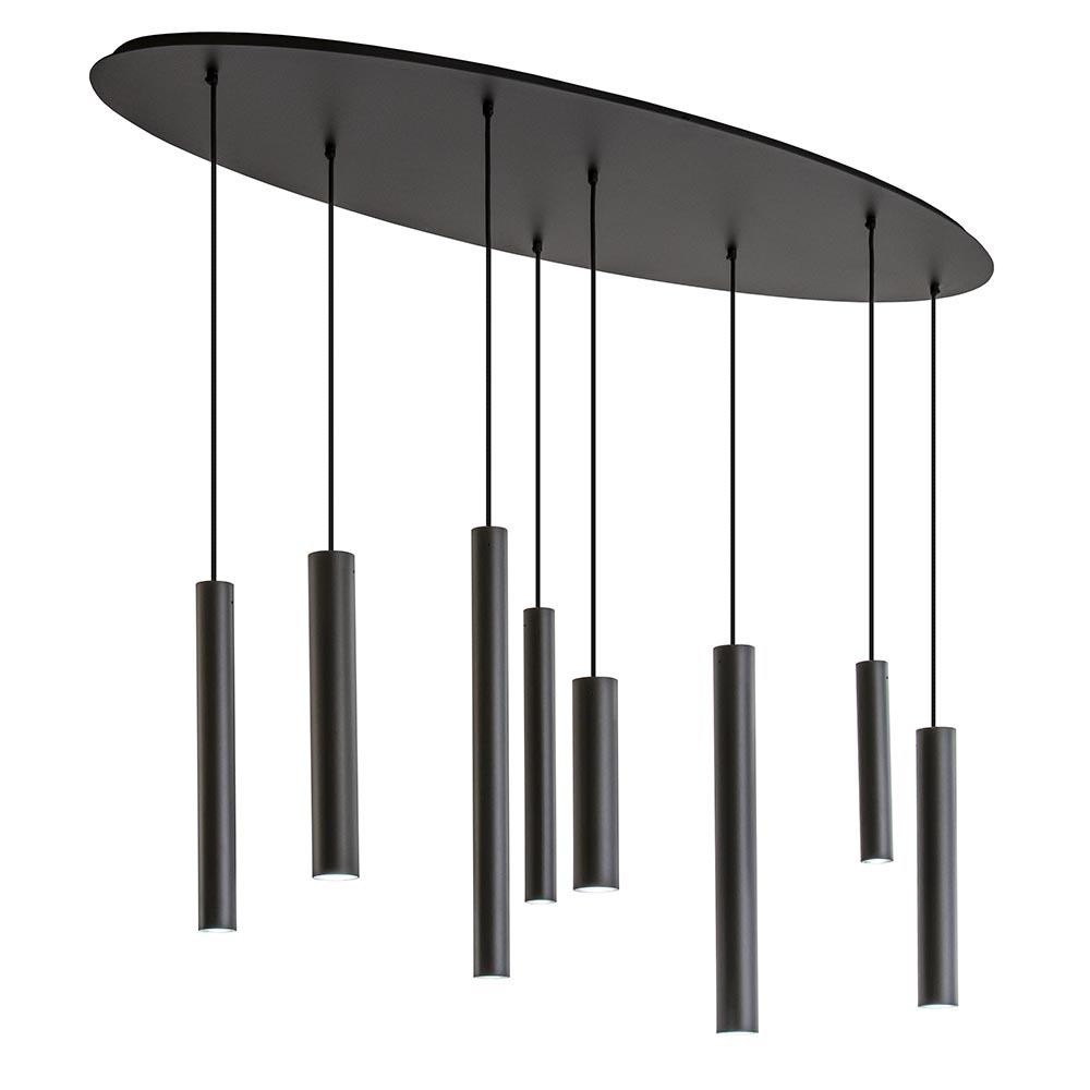 Homepagina / Lampen / Eettafellampen / Ovale 8-lichts hanglamp tubes zwart metaal