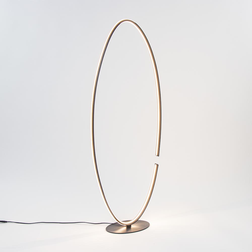 Een strak vormgegeven vloerlamp met energiezuinige LED verlichting. De moderne vloerlamp heeft een ovale armatuur die zowel aan de binnen- als buitenzijde is voorzien van een LED strip. De LED verlichting geeft met 2700 Kelvin een sfeervolle warm witte verlichting die dmv die dimmer in het snoer ook naar wens is te dimmen. Zo creëert u gemakkelijk de gewenste sfeer. Het armatuur heeft een open constructie dat wordt versterkt door de opening. Dit geeft de zwarte LED vloerlamp nog meer een design look. De staande LED lamp is voorzien van een zwart snoer van 255 cm met een dimmer op 90 cm van de lamp.