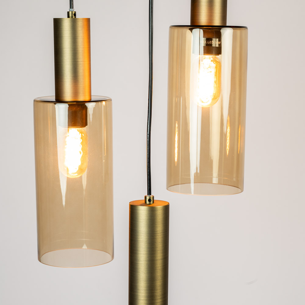 Perugia hanglamp – Brons / amber – 3-lichts – Rond – E27 & GU10