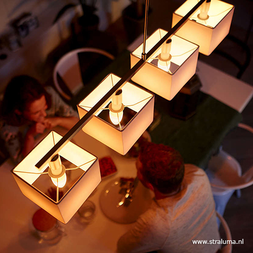 Let op, deze lamp werkt niet zonder de bridge. De hue-bridge is de brug tussen de lampen en de app op uw smartphone of tablet. U kunt maximaal 50 lampen tegelijk aansluiten. De Hue lampen werken niet met een externe dimmer, ze zijn alleen te dimmen/bedienen met de gratis app.