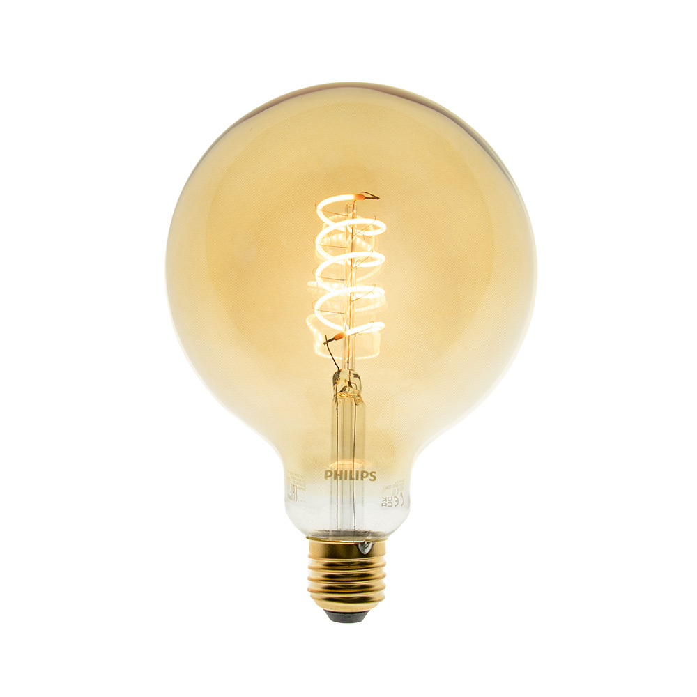 Een mooie decoratieve lichtbron met amber kleurig glas. Deze globe bron is een komt mooi tot z’n recht in de bijpassende E27 retro pendel. Het warme gouden glas zorgt voor een sfeervolle verlichting en een tikkeltje klassieke uitstraling.