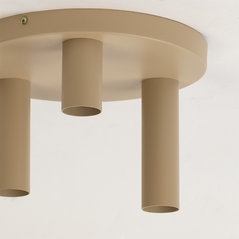 Deze moderne plafondlamp in een stijlvolle beige kleur is een echte blikvanger voor ieder interieur. Het strakke ontwerp met drie cilindervormige fittingen geeft de lamp een minimalistische, maar luxe uitstraling. Perfect voor de woonkamer, hal of slaapkamer. Dankzij het compacte formaat past deze lamp goed in zowel kleine als grote ruimtes. Combineer de lamp met decoratieve lichtbronnen voor een warme en sfeervolle gloed. Het beige armatuur voegt een subtiele elegantie toe aan je interieur, terwijl de blootgestelde lichtbronnen zorgen voor een mooie spreiding van het licht.