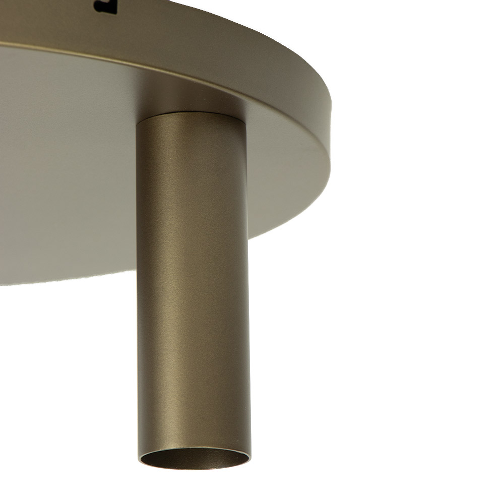 Specificaties: • Afmetingen: Ø40 x 19 cm (ø x h) • Plafondbevestiging: Ø40 x 3 cm (ø x h) • Kleur: Goud / brons • Materiaal: Metaal • Fittingen: 3x E27 (lichtbronnen niet inbegrepen) • Dimbaar: Ja, met geschikte dimbare lichtbronnen en dimmer (niet inbegrepen)