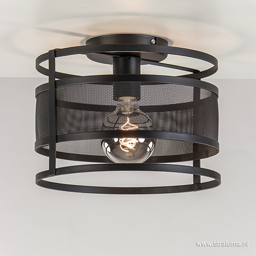 Homepagina / Lampen / Nachtkastlampen / Plafondlamp cilinder gaas zwart