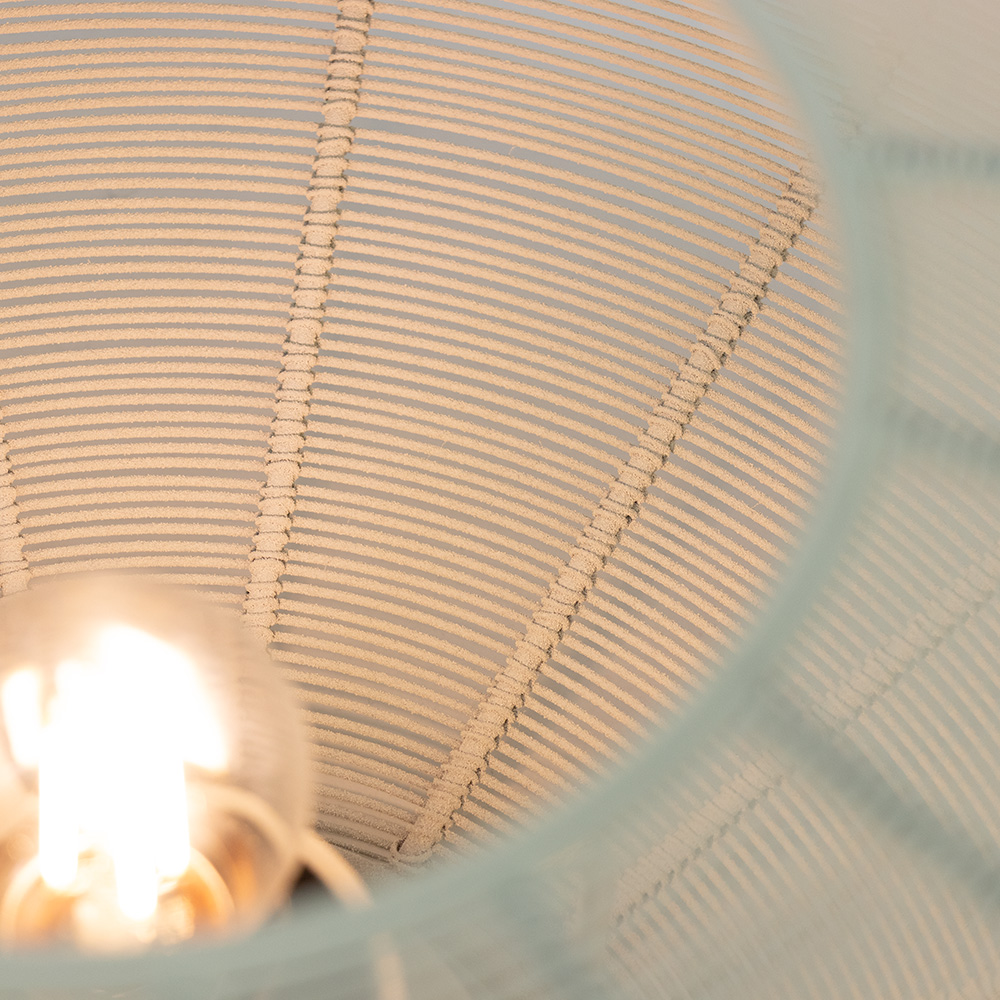 Breng een subtiele, maar verfijnde sfeer in je ruimte met deze minimalistische plafondlamp. Het slanke, koepelvormige ontwerp is opgebouwd uit delicate draden die een mooi patroon vormen, wat zorgt voor een zachte en gelijkmatige verlichting. Het stijlvolle gebruik van natuurlijke materialen zorgt voor een moderne, maar toch warme uitstraling die perfect past in diverse interieurstijlen. Deze plafondlamp is ideaal voor een hal, woonkamer of slaapkamer en voegt een eigentijdse charme toe aan je huis. Het eenvoudige maar elegante ontwerp maakt het een veelzijdige keuze voor zowel modern als klassiek interieur.