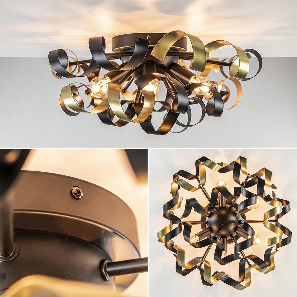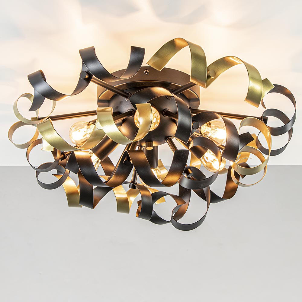 Homepagina / Lampen / Plafondlampen / Plafondlamp Krul zwart/goud