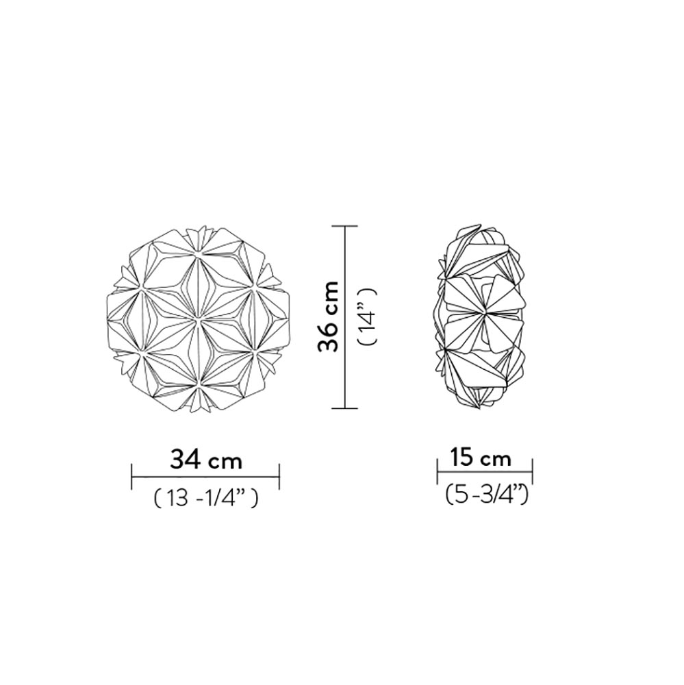 Geïnspireerd op de ‘flower of life’, maakt dat deze plafondlamp een uniek ontwerp heeft waar de bloem mooi is terug te vinden. De design lamp bestaat uit diverse ‘blaadjes’ die samen het geheel vormen. De ronde lamp is zowel als plafond- en wandlamp te gebruiken. De kap wordt gemakkelijk op de bevestiging geplaatst met magneetjes. Plafondlamp La Vie is verkrijgbaar in divere kleuren en wordt geleverd zonder lichtbron (2x E14)