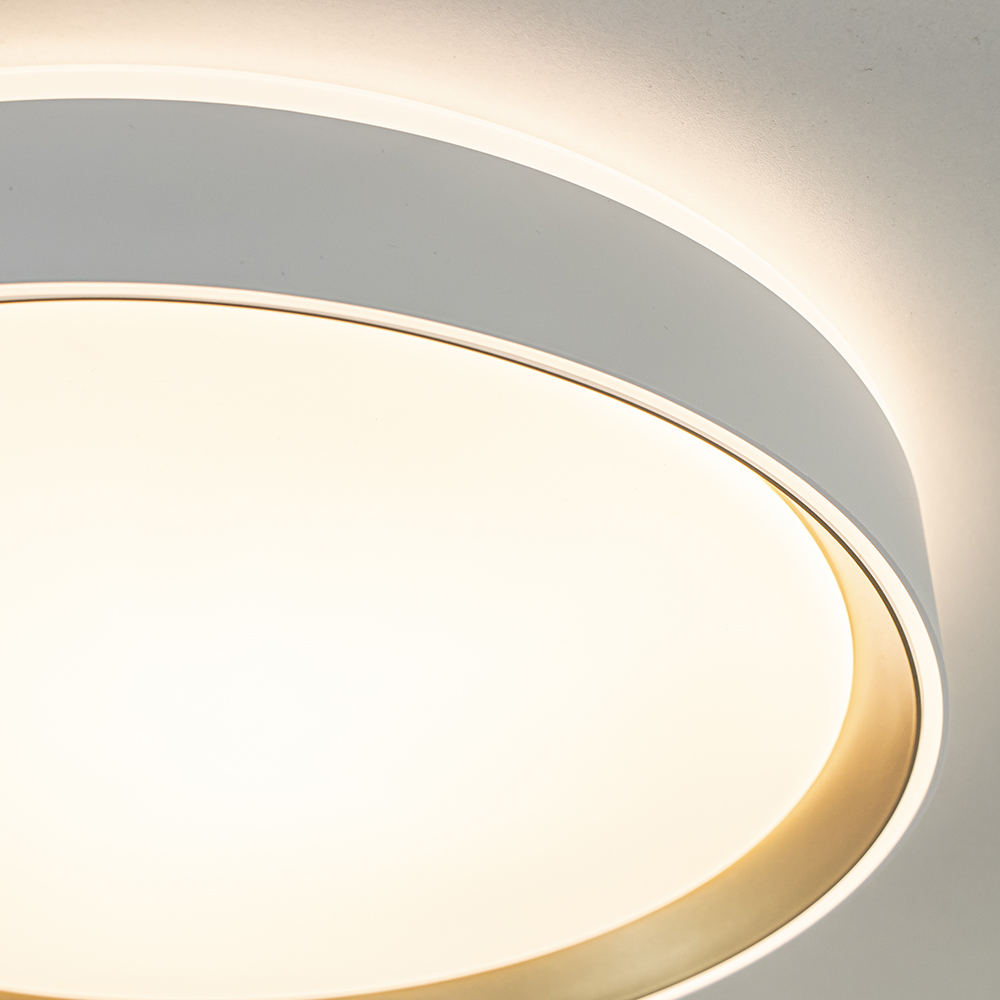 – afm: Ø40×6,5 cm – bevestiging: Ø35×2 cm – wit/goud – inclusief LED – 2700 Kelvin – 2160 lumen – 3-standen dimbaar