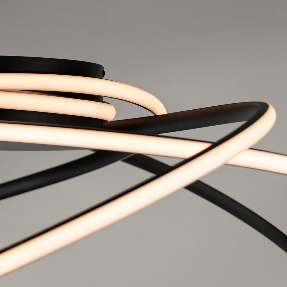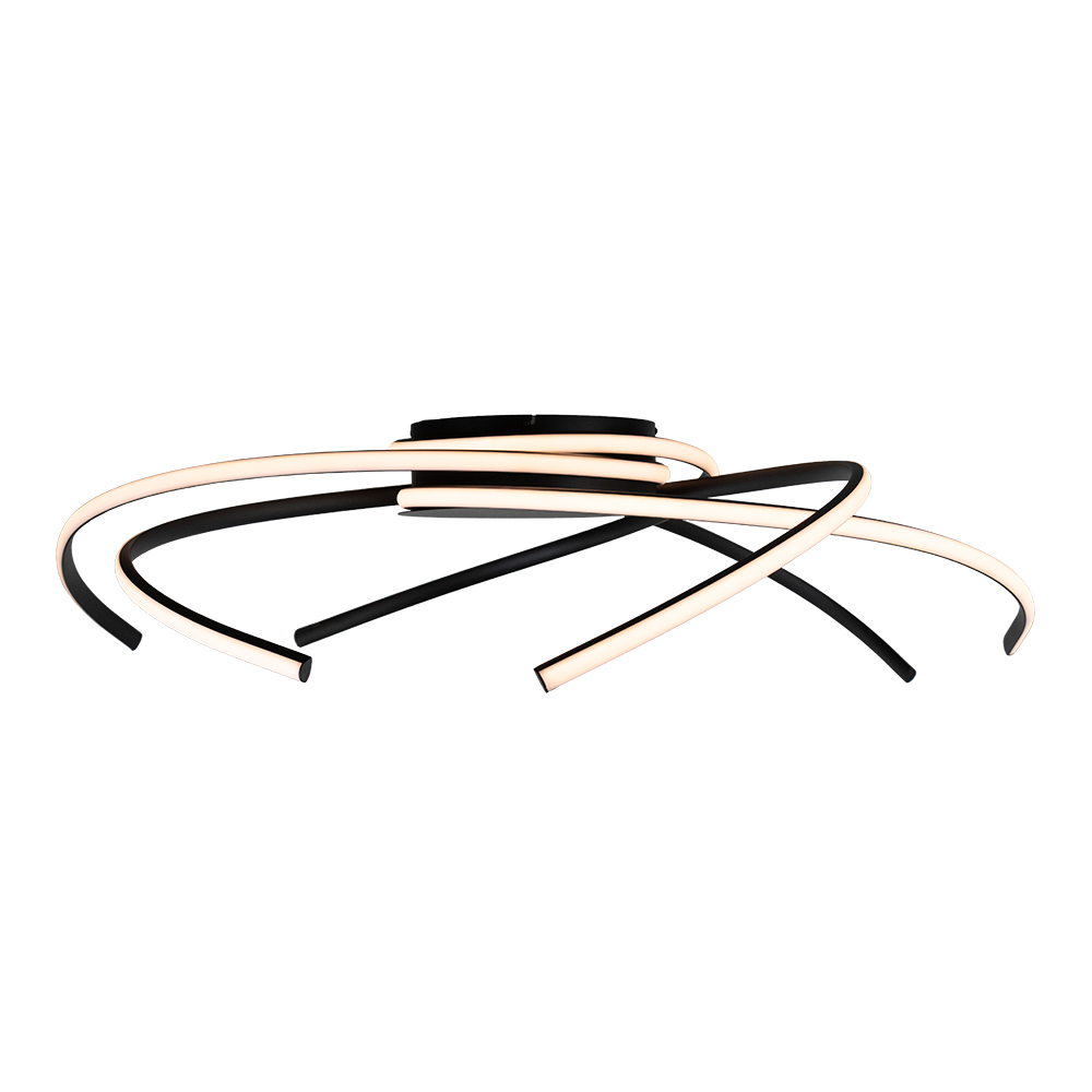 Deze moderne LED plafondlamp combineert innovatieve verlichtingstechniek met een opvallend organisch design. De golvende lijnen, uitgevoerd in zwart met geïntegreerde LED’s, lijken sierlijk te dansen onder het plafond. Dit zorgt niet alleen voor een krachtige lichtopbrengst, maar ook voor een dynamisch en eigentijds visueel statement. De warme witte lichtkleur verspreidt een aangename sfeer in de ruimte, terwijl de platte bevestiging deze lamp zeer geschikt maakt voor zowel hoge als lagere plafonds. Een ideale keuze voor moderne woonkamers, strakke hallen of stijlvolle kantoorruimtes.