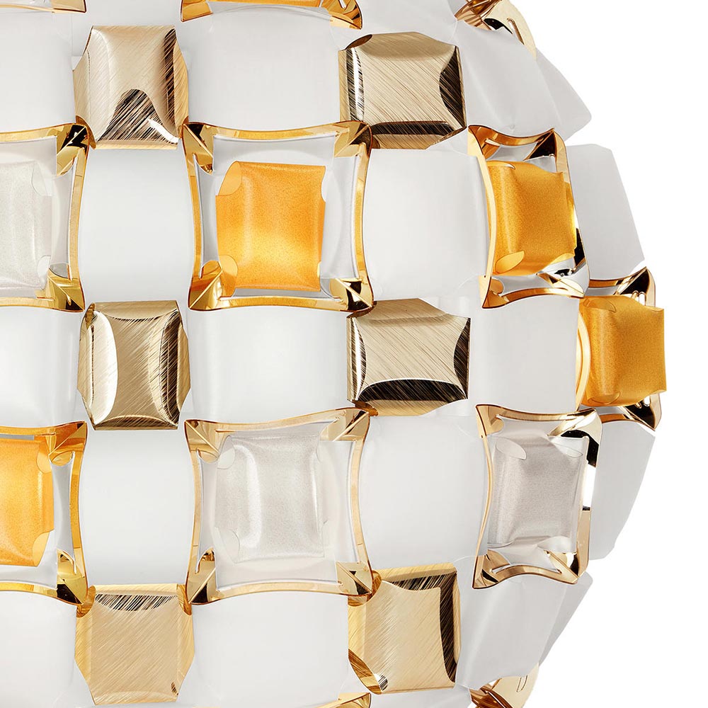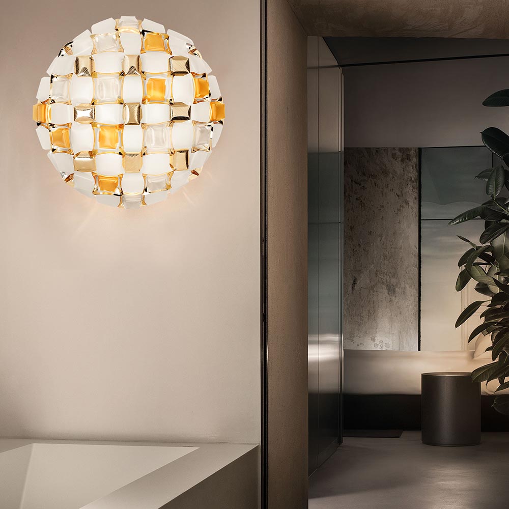 Design van Italiaans komaf. Deze luxe plafondlamp van ‘Slamp’ is ontworpen door Adriano Rachele en straalt een en al luxe en glamour uit. De plafonnière is geïnspireerd op juwelen uit de haute couture. De plafondlamp doet dan ook meteen denken aan edelstenen en diamanten. De geometrische kap bestaat uit losse elementen die samen de kap vormen en zijn gemaakt van opalflex en lentiflex, beide materialen die zorgen voor de extra luxe uitstraling. De kap wordt met een magnetisch ophangsysteem aan de bevestiging opgehangen en de lamp is geschikt voor zowel het plafond als de muur. Waar deze Italiaanse designlamp ook komt te hangen, het geeft meteen sfeer, luxe en vooral glamour aan het interieur.