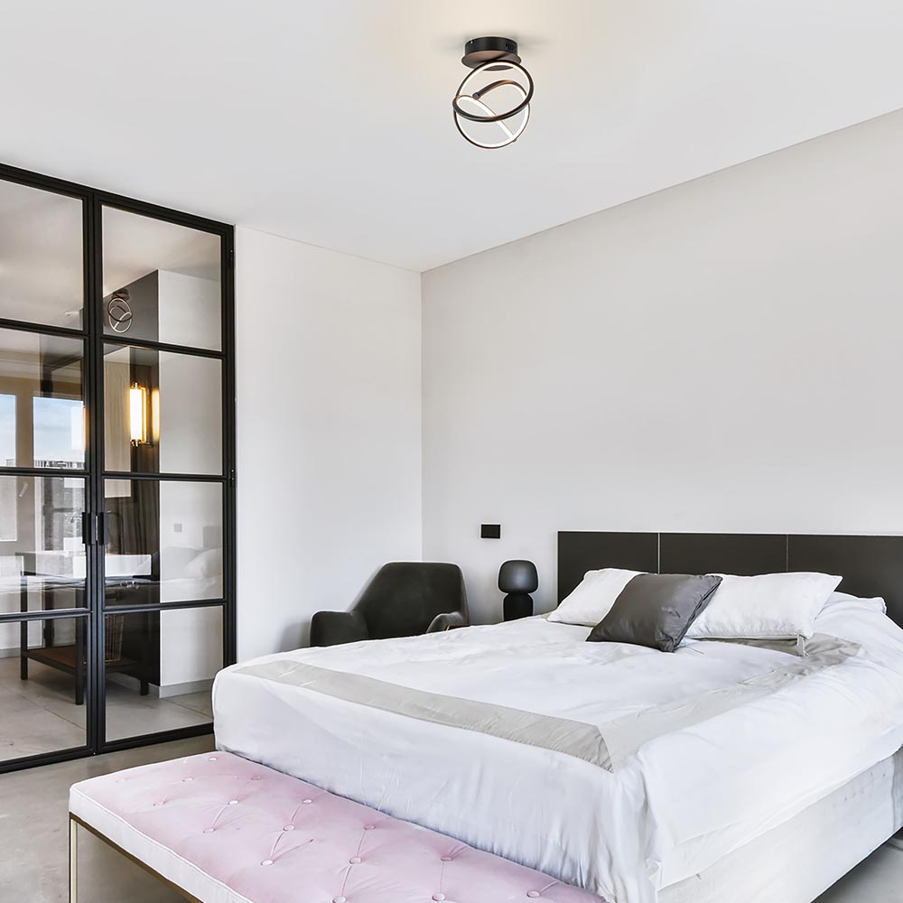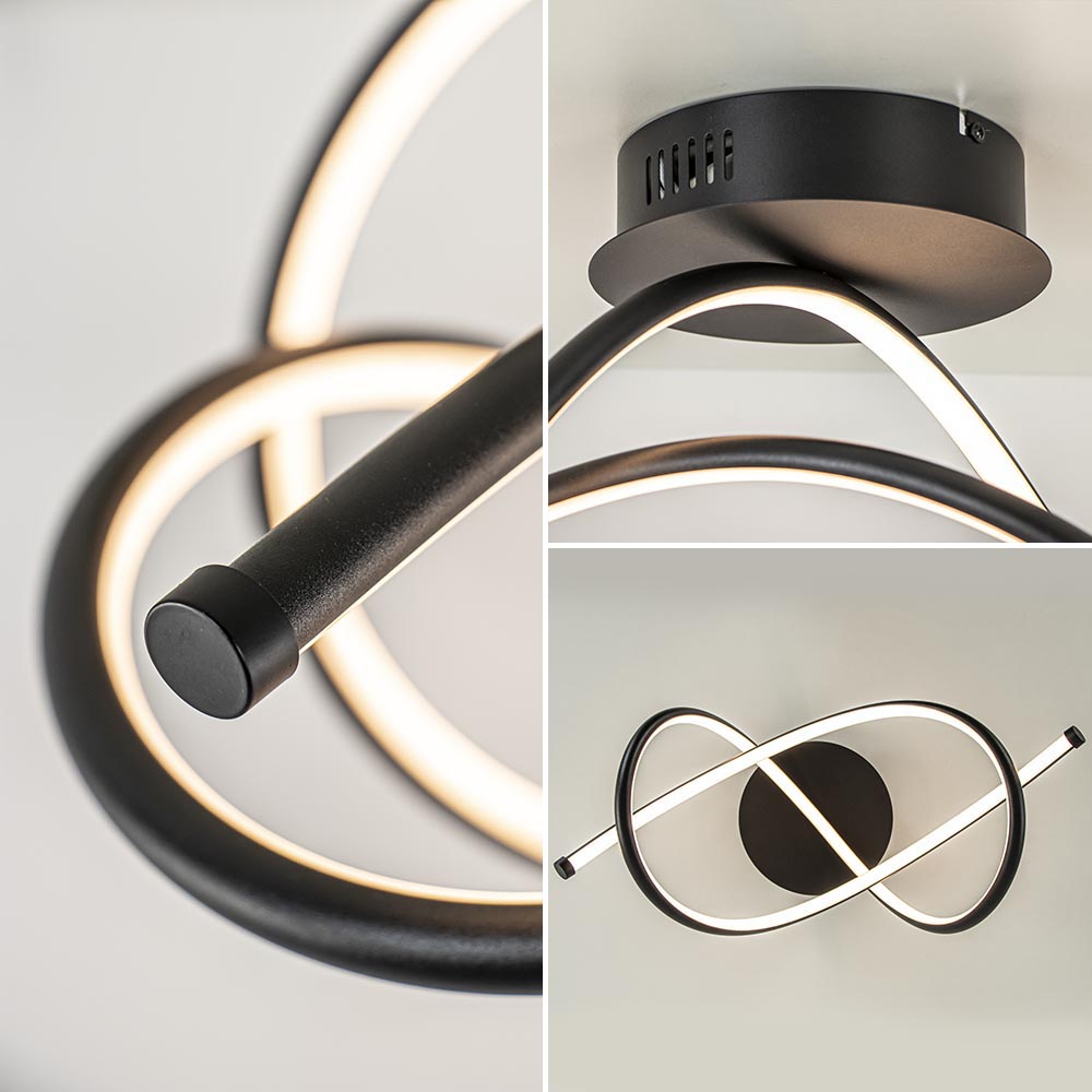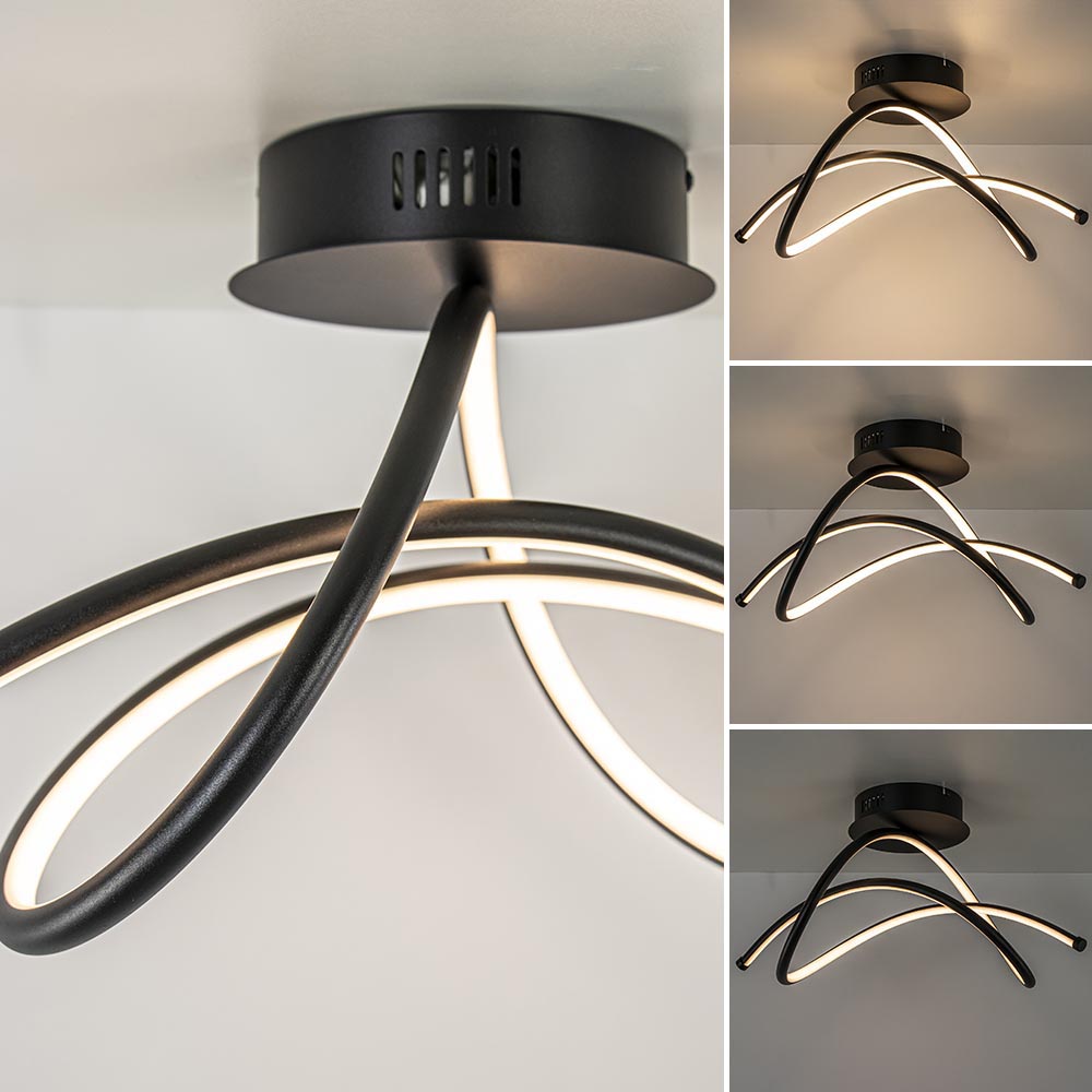 Een moderne plafondlamp met een strak design. De mat zwarte plafonnière is gemaakt in een sierlijke vorm waar LED strips in zitten verwerkt. Dit geeft de moderne lamp een speelse look en het LED zorgt er tegelijk voor dat de lamp energiezuinig is. Groot voordeel van deze moderne plafondlamp is ook dat deze in 3 standen is te dimmen. Hier is geen LED-dimmer voor nodig maar kan gewoon met de wandschakelaar. U dimt de lamp gemakkelijk door meerdere keren op de schakelaar te drukken. Dit maakt de lamp prima geschikt voor een woonkamer, keuken, slaapkamer of hal.