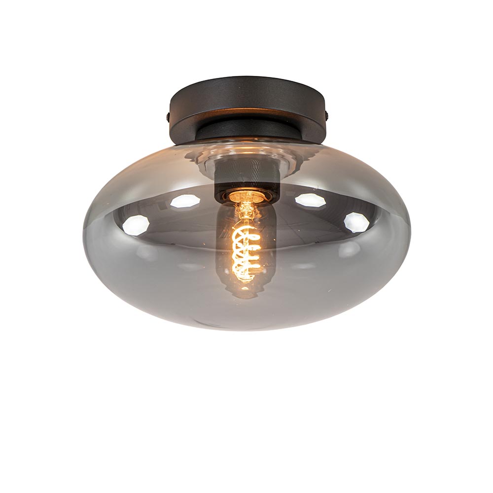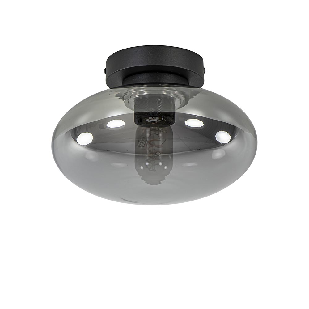 Ideaal voor in een hal, toilet of slaapkamer. Deze kleine plafondlamp voldoet helemaal aan de huidige trends. De plafondlamp bestaat uit een metalen bevestiging met een doorsnede van 12 cm die is voorzien van een mat zwarte finish en een smoke/titanium glazen kap. De kap heeft een ovale vorm en wordt op de bevestiging vastgedraaid dmv schroefdraad. De smoke glazen plafondlamp wordt geleverd zonder lichtbron en is dimbaar middels een externe dimmer (exclusief).