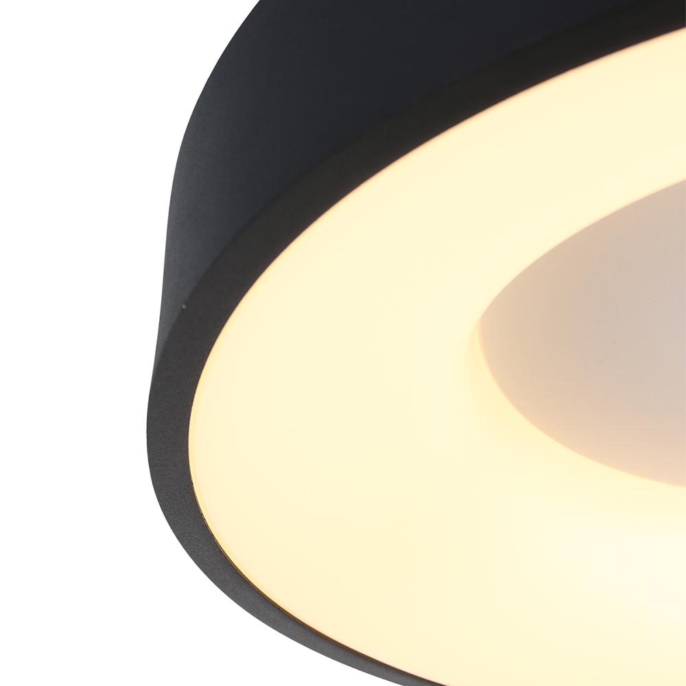 Deze moderne plafondlamp komt perfect tot z’n recht in een slaapkamer, keuken of hal. De ronde plafonnière is gemaakt van metaal en kunststof en is voorzien van geïntegreerd LED. Het LED geeft met 2700 Kelvin een sfeervolle warm witte verlichting en kan door de lichtopbrengst van 2800 lumen prima een hele kamer verlichten. De plafondlamp heeft een doorsnede van 38 cm en een hoogte van maar 9 cm, dit maakt de zwarte plafondlamp prima geschikt voor een ruimte met een laag plafond. Middels een externe dimmer (exclusief) is de moderne plafondlamp naar wens te dimmen.