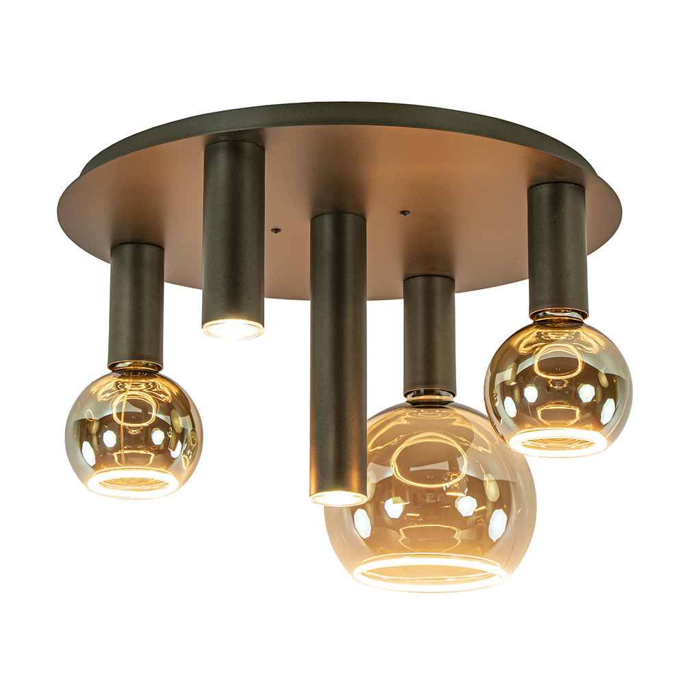 De lamp wordt geleverd zonder lichtbronnen. De afgebeelde lichtbronnen zijn ter illustratie en worden vaak aangezien voor kapjes. Je kunt zelf kiezen welke E27- en GU10-lichtbronnen het beste passen bij jouw gewenste sfeer en stijl.