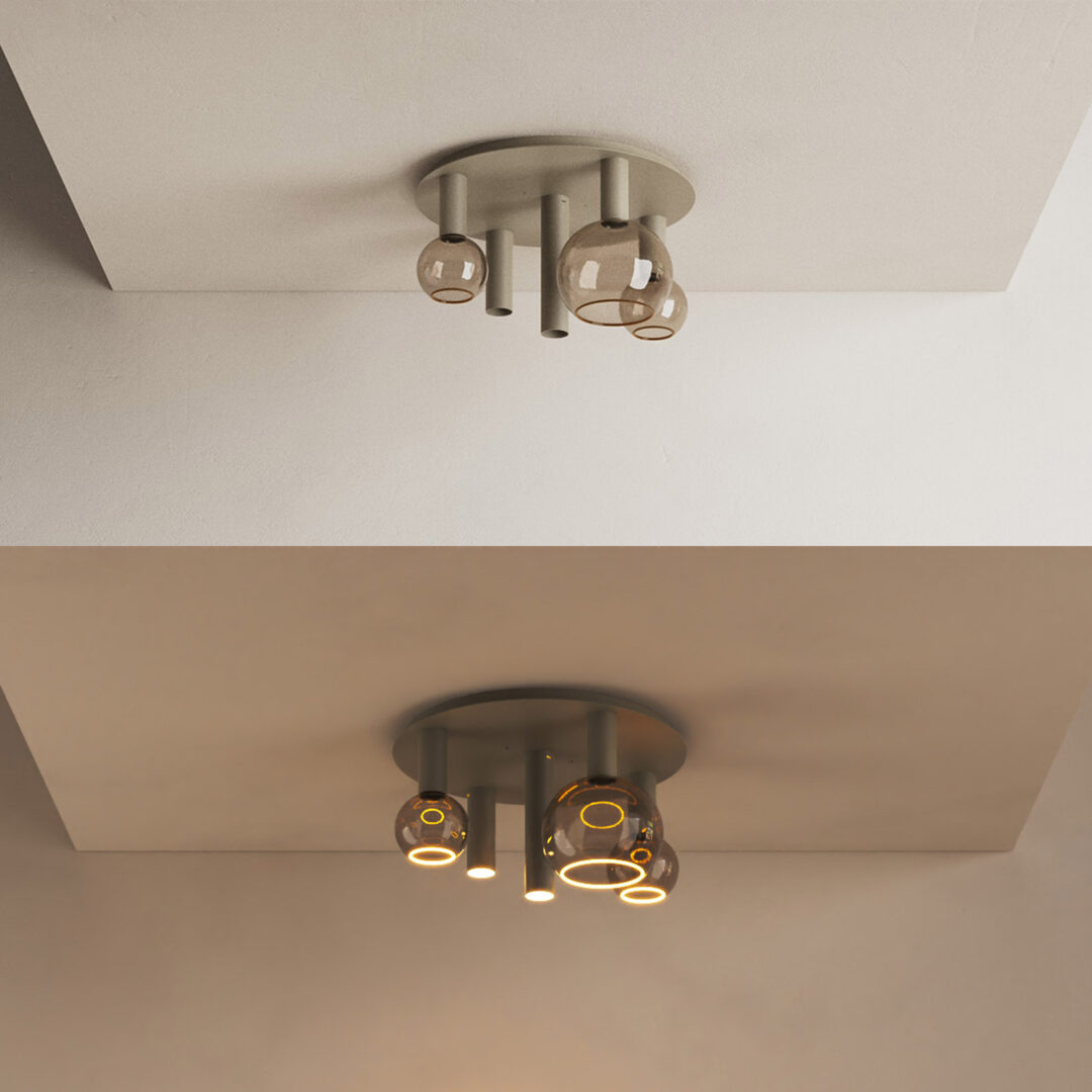 De Riva plafonnière is een moderne eyecatcher met een luxe uitstraling. De ronde open structuur in Quartz (een warme zand/beige tint) geeft de lamp een luchtige, elegante look die prachtig past in zowel rustige als stijlvolle interieurs. De speelse verdeling van vijf lichtpunten creëert een dynamisch lijnenspel dat meteen opvalt zonder te overheersen.