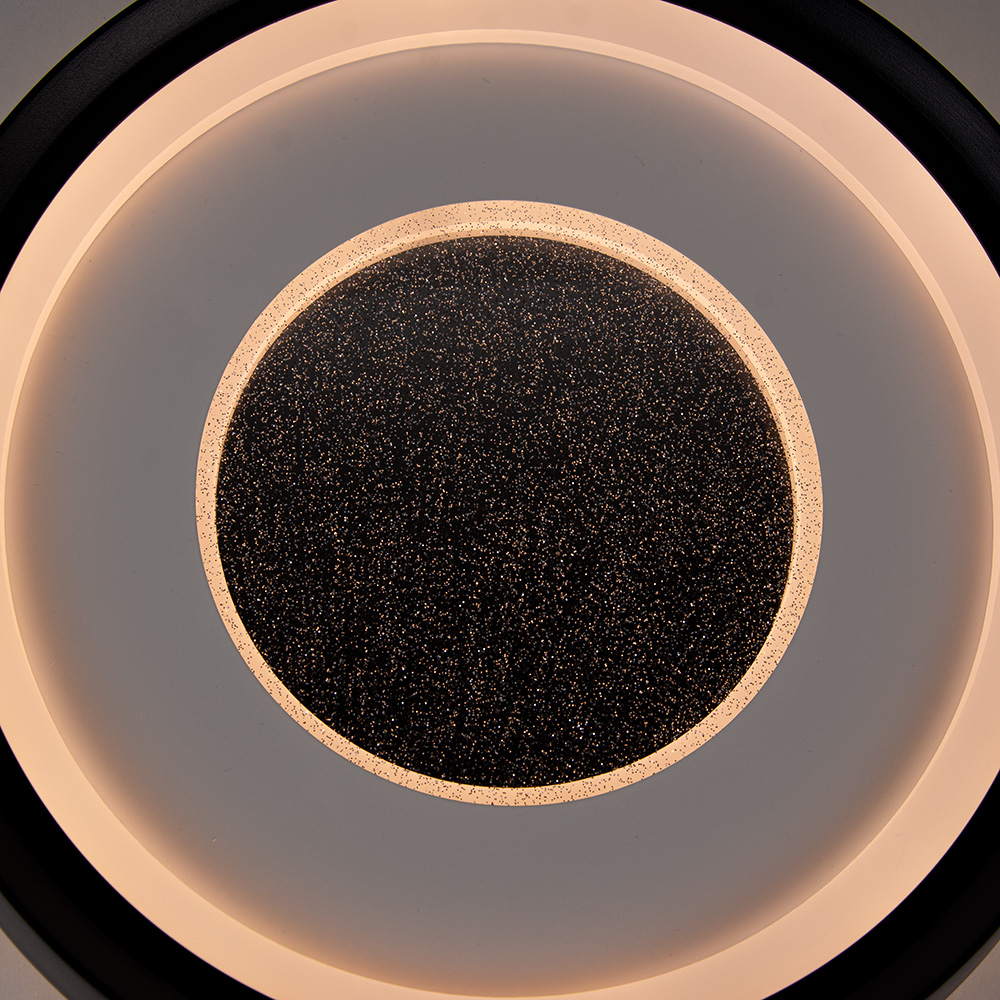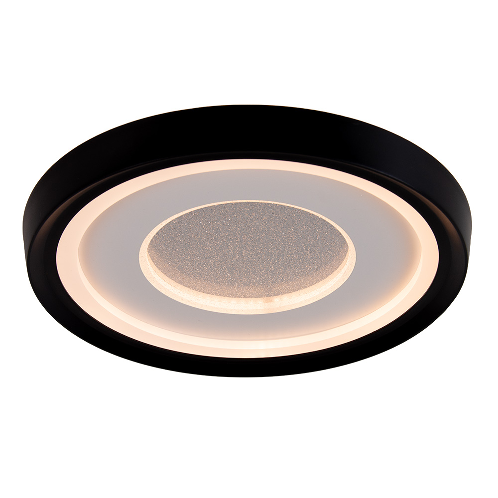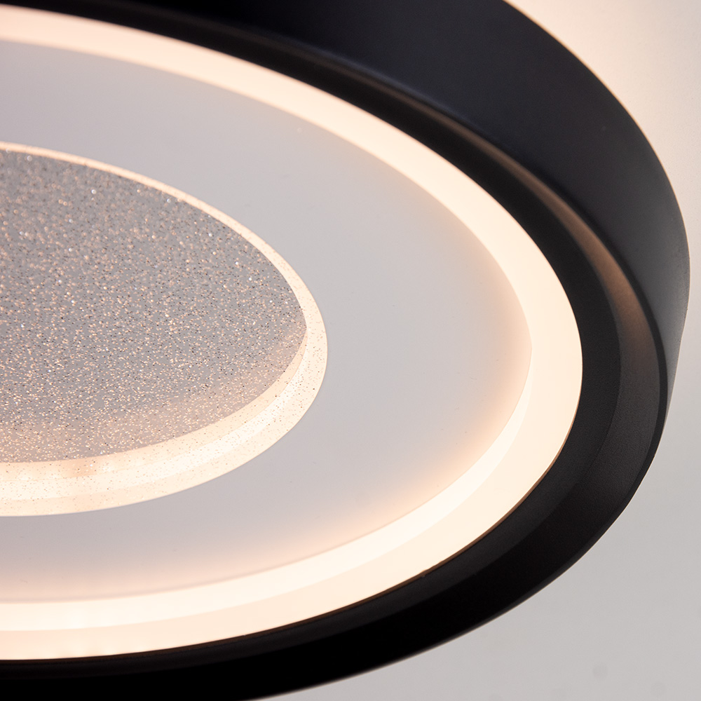 Geef je interieur een stijlvolle upgrade met de Sparkle plafondlamp. Een moderne blikvanger die elegantie en functionaliteit naadloos combineert. Het strakke ronde ontwerp wordt versterkt door een zwarte rand en een centraal paneel met een subtiel glittereffect, dat zorgt voor een verfijnde schittering zodra de lamp brandt. De geïntegreerde LED-verlichting verspreidt een aangenaam warm wit licht en is bovendien dimbaar in drie standen via de standaard wandschakelaar. Zo pas je eenvoudig de lichtintensiteit aan, van functioneel tot sfeervol. Perfect voor onderandere de hal, woonkamer en slaapkamer.