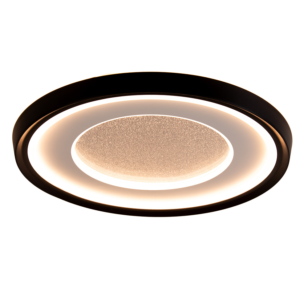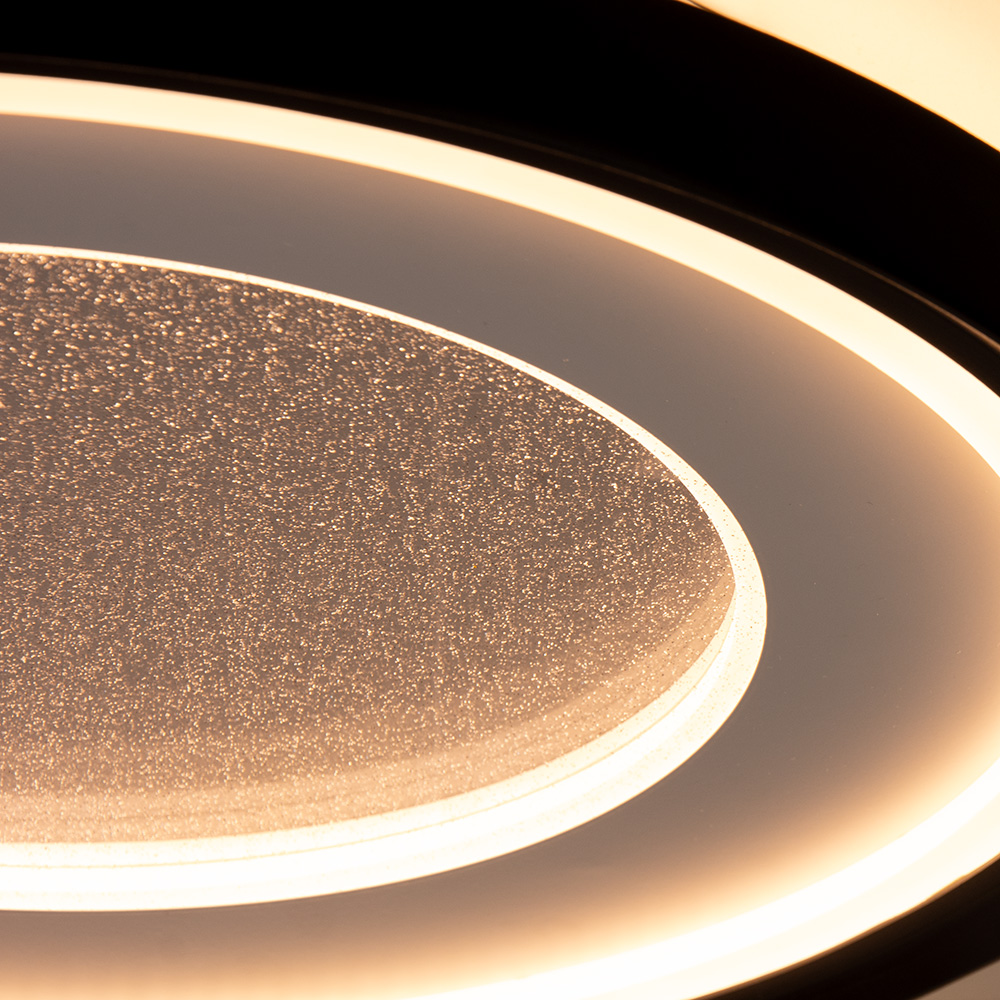 Geef je interieur een stijlvolle upgrade met de Sparkle plafondlamp. Een moderne blikvanger die elegantie en functionaliteit naadloos combineert. Het strakke ronde ontwerp wordt versterkt door een zwarte rand en een centraal paneel met een subtiel glittereffect, dat zorgt voor een verfijnde schittering zodra de lamp brandt. De geïntegreerde LED-verlichting verspreidt een aangenaam warm wit licht en is bovendien dimbaar in drie standen via de standaard wandschakelaar. Zo pas je eenvoudig de lichtintensiteit aan, van functioneel tot sfeervol. Perfect voor onderandere de hal, woonkamer en slaapkamer.
