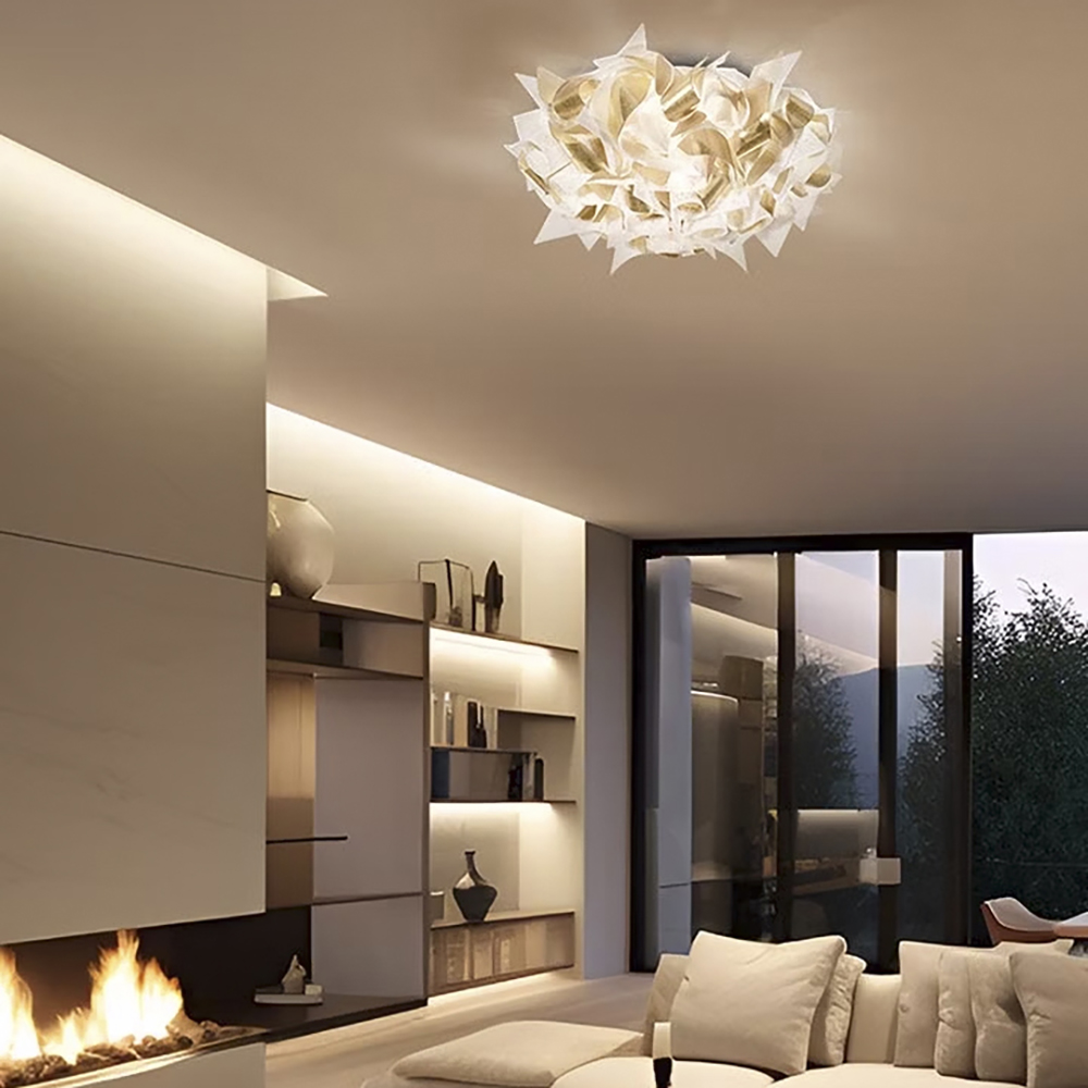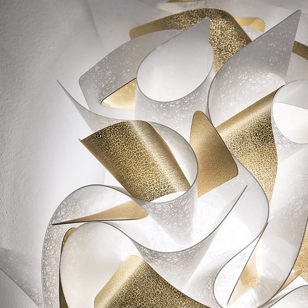 Deze prachtige design plafond/wandlamp is een ware eyecatcher in het interieur. Of de decoartieve lamp op de wand of het plafond hangt, hij springt direct in het oog. De lamp is gemaakt van kunststof en uitgevoerd in het wit met goud. Dit geeft een extra luxe uitstraling aan de lamp.