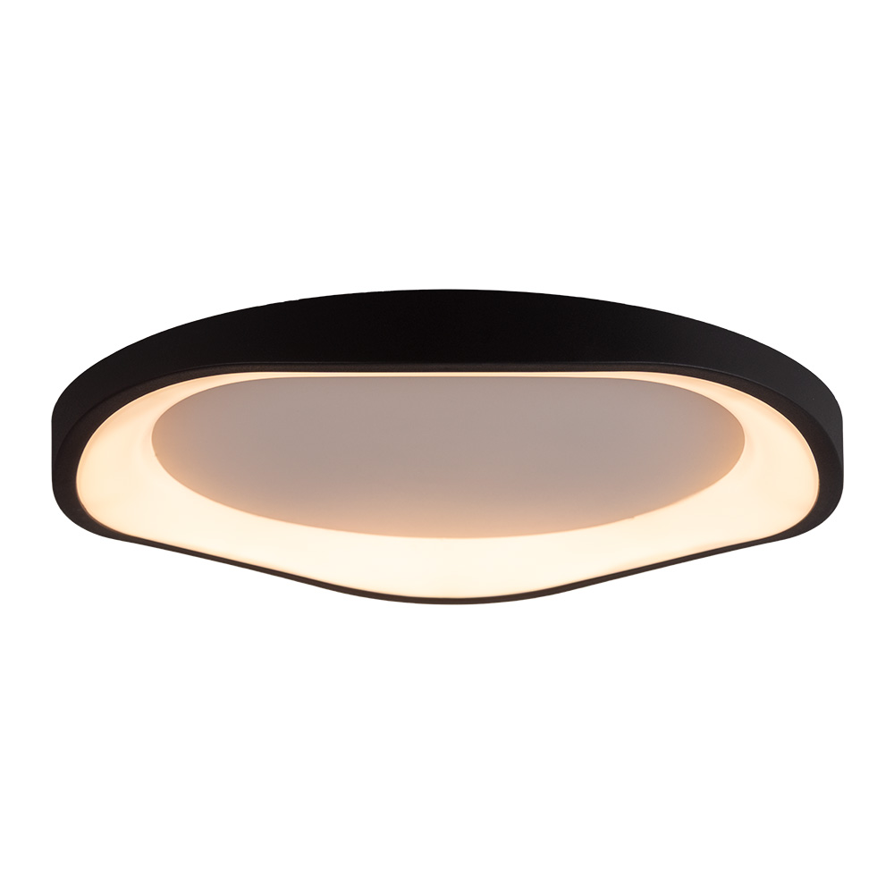 De Wave plafondlamp brengt een speels en modern accent in je interieur. Met zijn vloeiende, asymmetrische vormgeving doet het ontwerp denken aan een golfbeweging. Subtiel, stijlvol en verrassend anders dan de standaard ronde plafondlamp. De zwarte omlijsting in combinatie met het opaalwitte kunststof zorgt voor een strak geheel dat naadloos past in zowel moderne als minimalistische interieurs. De lamp is uitgerust met geïntegreerde LED-verlichting die in drie standen dimbaar is via de normale wandschakelaar. Zo creëer je gemakkelijk de juiste sfeer voor elk moment van de dag, van helder werklicht tot zacht avondlicht.