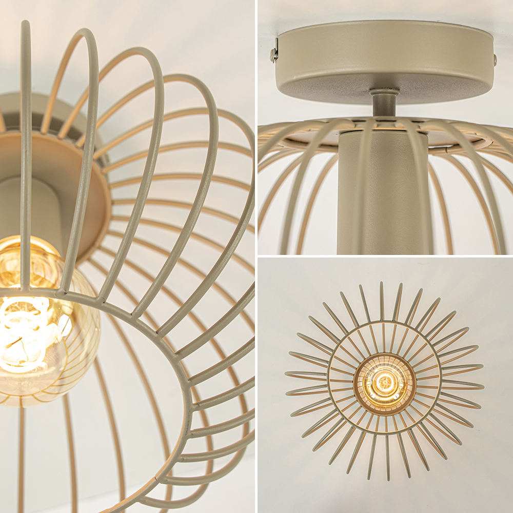 Deze trendy draad plafondlamp is een mooie toevoeging aan het interieur. De ronde plafondlamp is gemaakt van metaal en voorzien van een finish in de kleur mat zand. Dit geeft de lamp een trendy en Scandinavische look en feel die mooi matcht in diverse woonstijlen. Door z’n grootte is de plafonlamp is diverse ruimtes toe te passen, van het toilet tot de slaapkamer. De draad plafondlamp zand is dimbaar middels een externe dimmer (exclusief) en wordt geleverd zonder lichtbron.
