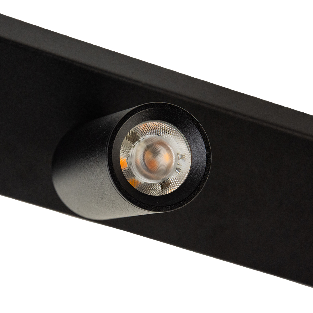 – Afmetingen: 46x 11.3x 7cm – Materiaal: Aluminium – Kleur: Zwart – Dimbaar (exclusief) – Exclusief lichtbron (GU10 Mini) – Snoer niet inbegrepen