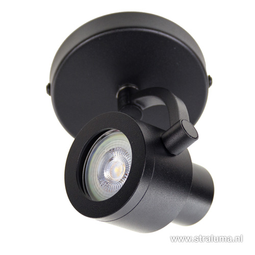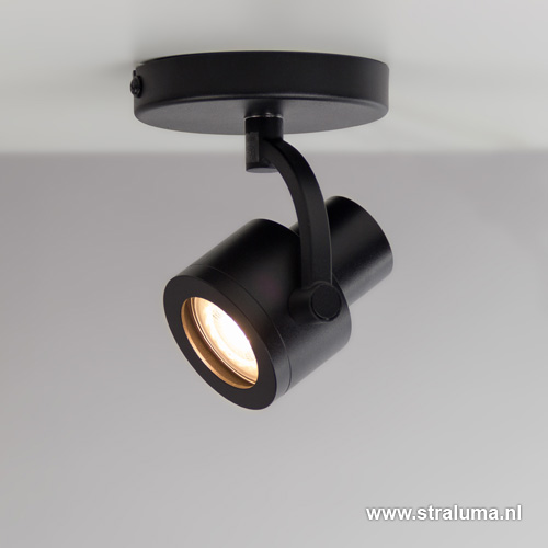 Een kleine, strak uitgevoerde plafondspot. Ideaal voor het toilet of in een kleine hal. Deze opbouwspot is kantel- en draaibaar en dus zeer goed te richten. Volledig uitgevoerd in staal en achteraf gespoten in mat zwart. De plafondlamp staal past mooi in een modern interieur en kan ook prima dienst doen voor het uitlichten van objecten of schilderijen.