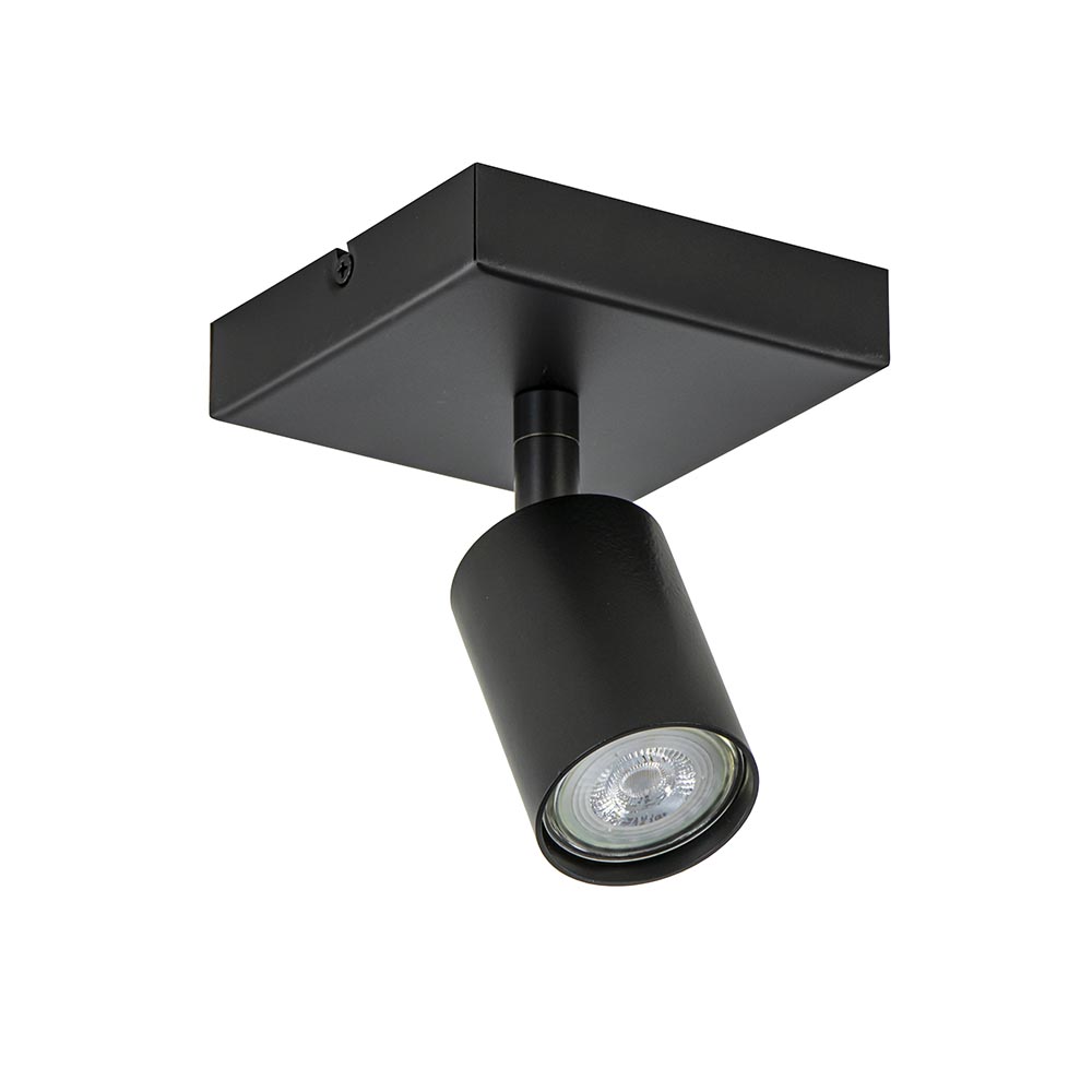 – hoogte: 16 cm – spot: Ø5,5×8 cm – bevestiging: 12x12x3 cm – metaal – mat zwart – verstelbaar – exclusief lichtbron (GU10) – dimbaar (exclusief)