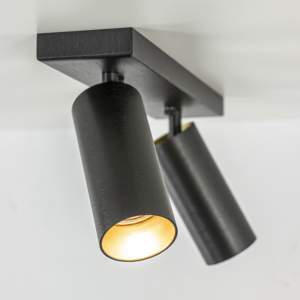 Een prachtige opbouwspot met een luxe uitstraling en afwerking. Deze metalen plafondspot is uitgevoerd in het dark titan, een donker grijze tint, met een goud detail aan de binnenzijde. Deze combinatie geeft de 2-lichts opbouwspot een chique en stijlvolle look die mooi matcht in diverse woonstijlen. De 2 spots zijn mooi verdeeld op de plafondplaat en zijn naar wens te verstellen door deze te kantelen en/of te draaien. Ideaal om zo een hal, gang of slaapkamer mee uit te lichten. De 2-lichts opbouwspot is dimbaar middels een externe dimmer (exclusief) en wordt geleverd exclusief lichtbronnen.