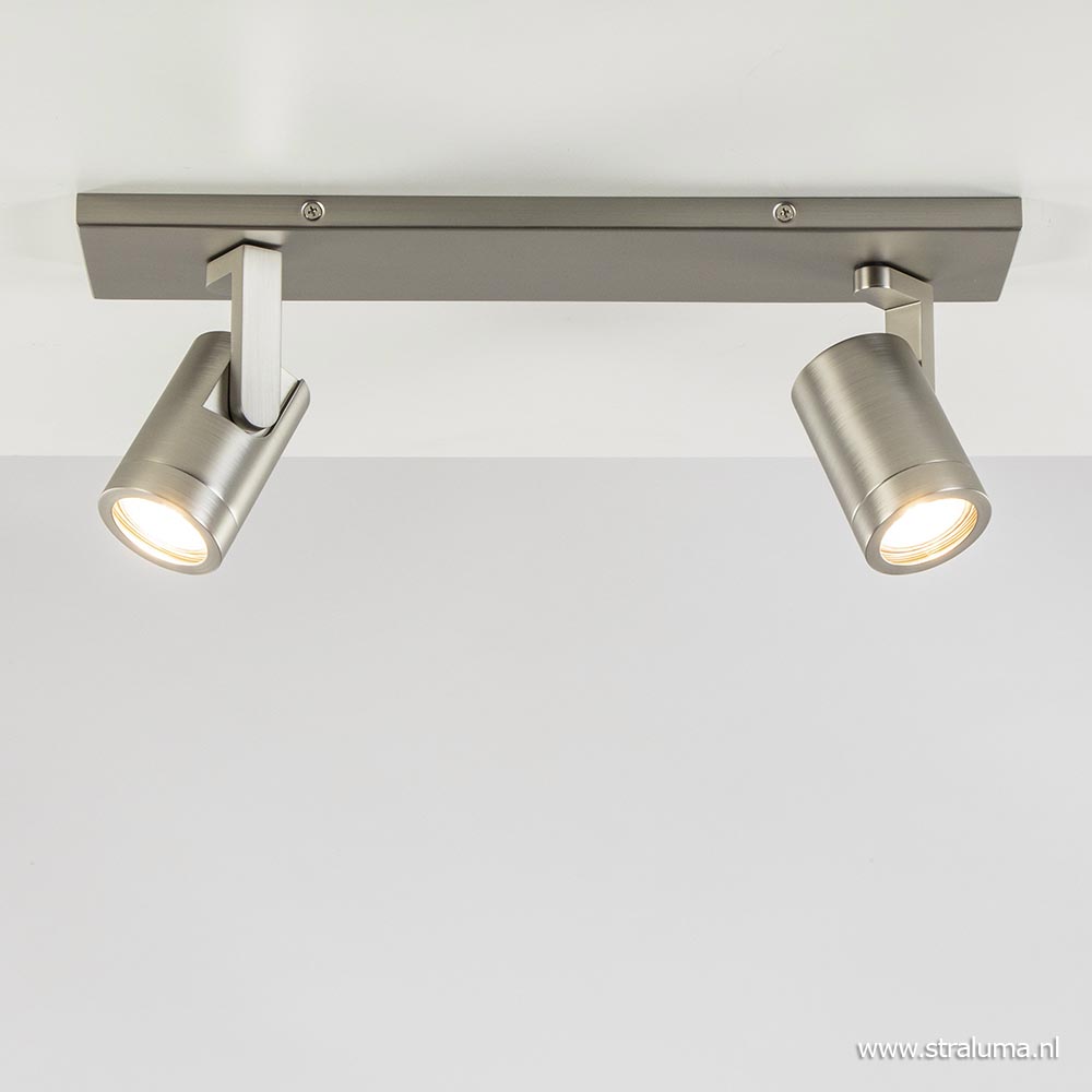 Homepagina / Lampen / Nachtkastlampen / Plafondspot Halo 2L balk nikkel gu10