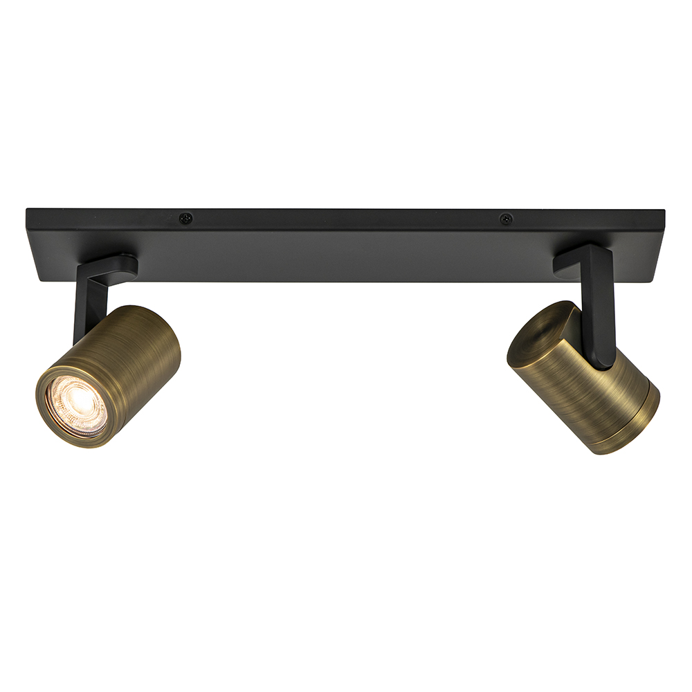 Deze stijlvolle plafondspot is een fijne toevoeging aan het interieur. Perfect voor een hal, keuken of slaapkamer. De 2-lichts opbouwspot op balk heeft een metalen armatuur dat is uitgevoerd in het mat zwart met brons. De lichtbronnen worden gemakkelijk geplaatst door de ring van de kapjes los te draaien. De plafondspots hebben een pootje dat kan draaien en de spot kan kantelen. Zo kunt u de spots altijd naar wens verstellen.