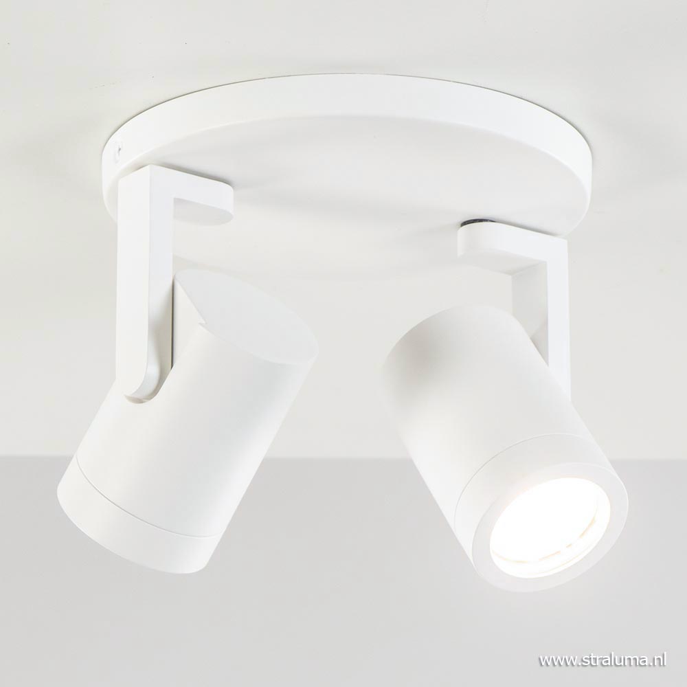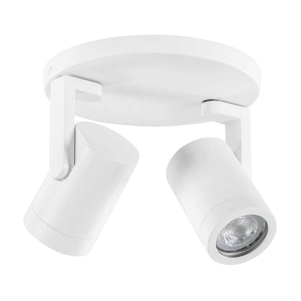 – hoogte: 15 cm – spots: Ø6×9 cm – bevestiging: Ø17×1,5 cm – verstelbare spots – metaal, mat wit – exclusief lichtbron (2x GU10) – dimbaar (exclusief)