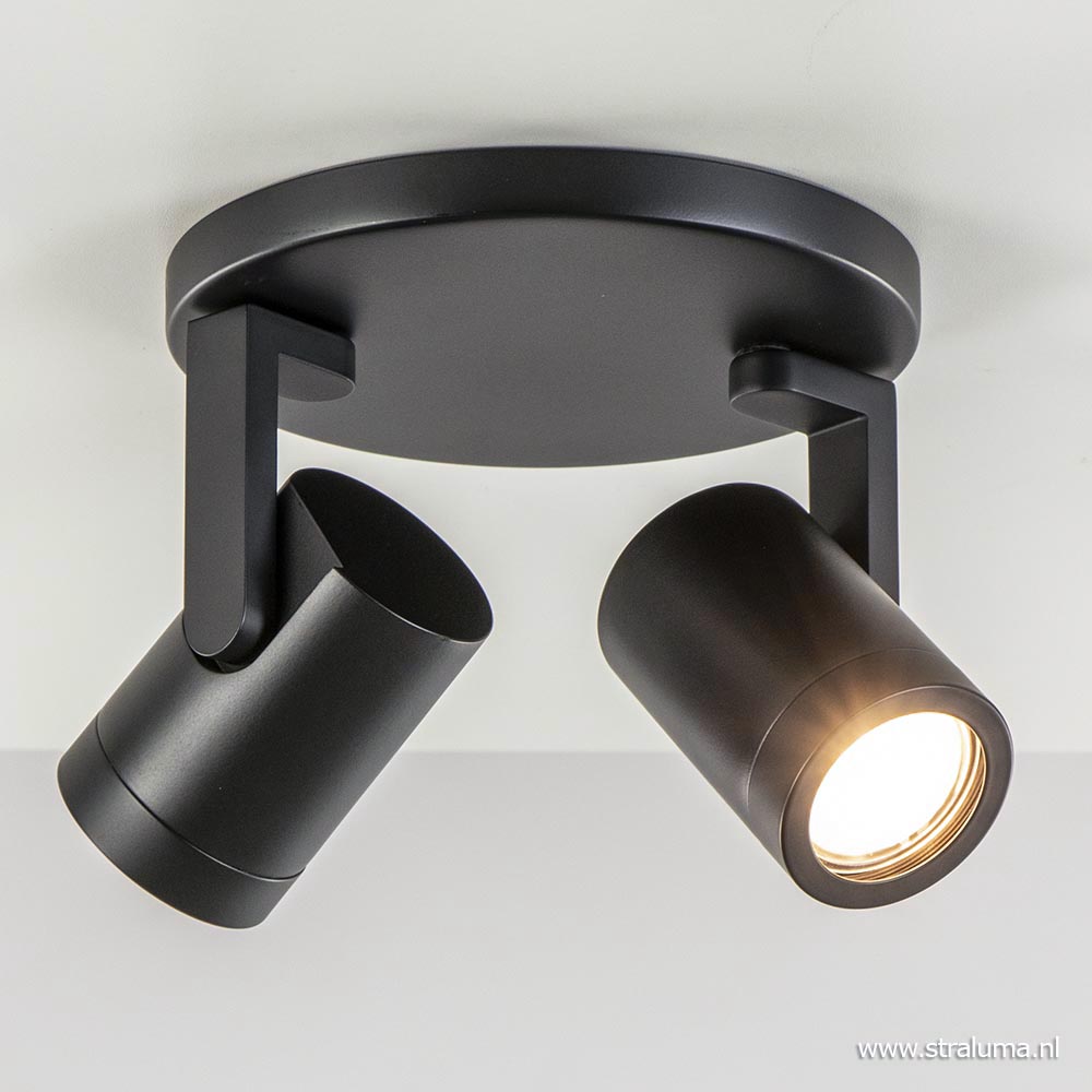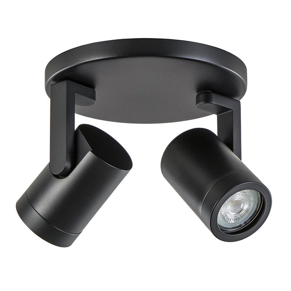 – hoogte: 15 cm – spots: Ø6×9 cm – bevestiging: Ø17×1,5 cm – verstelbare spots – metaal, mat zwart – exclusief lichtbron (2x GU10) – dimbaar (exclusief)