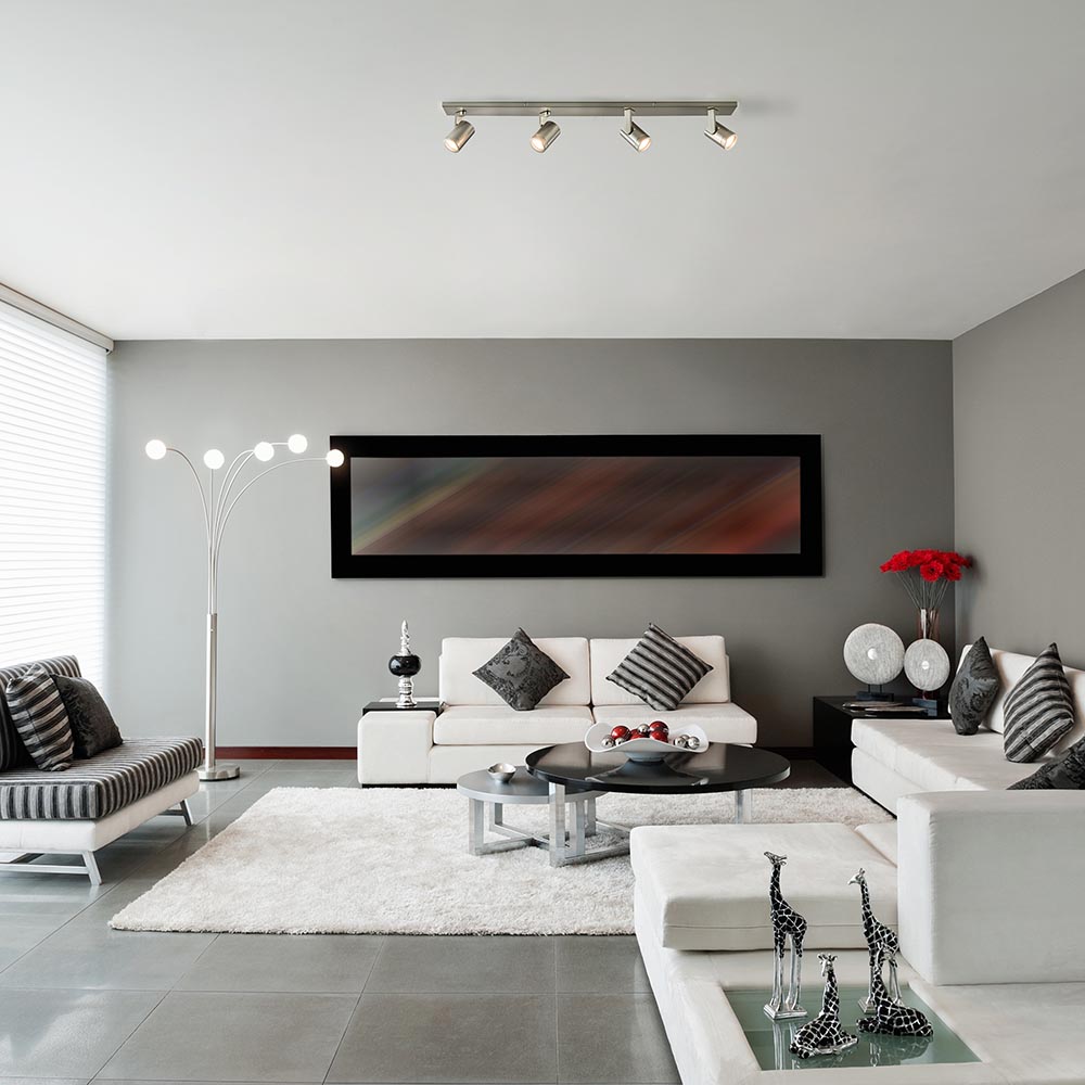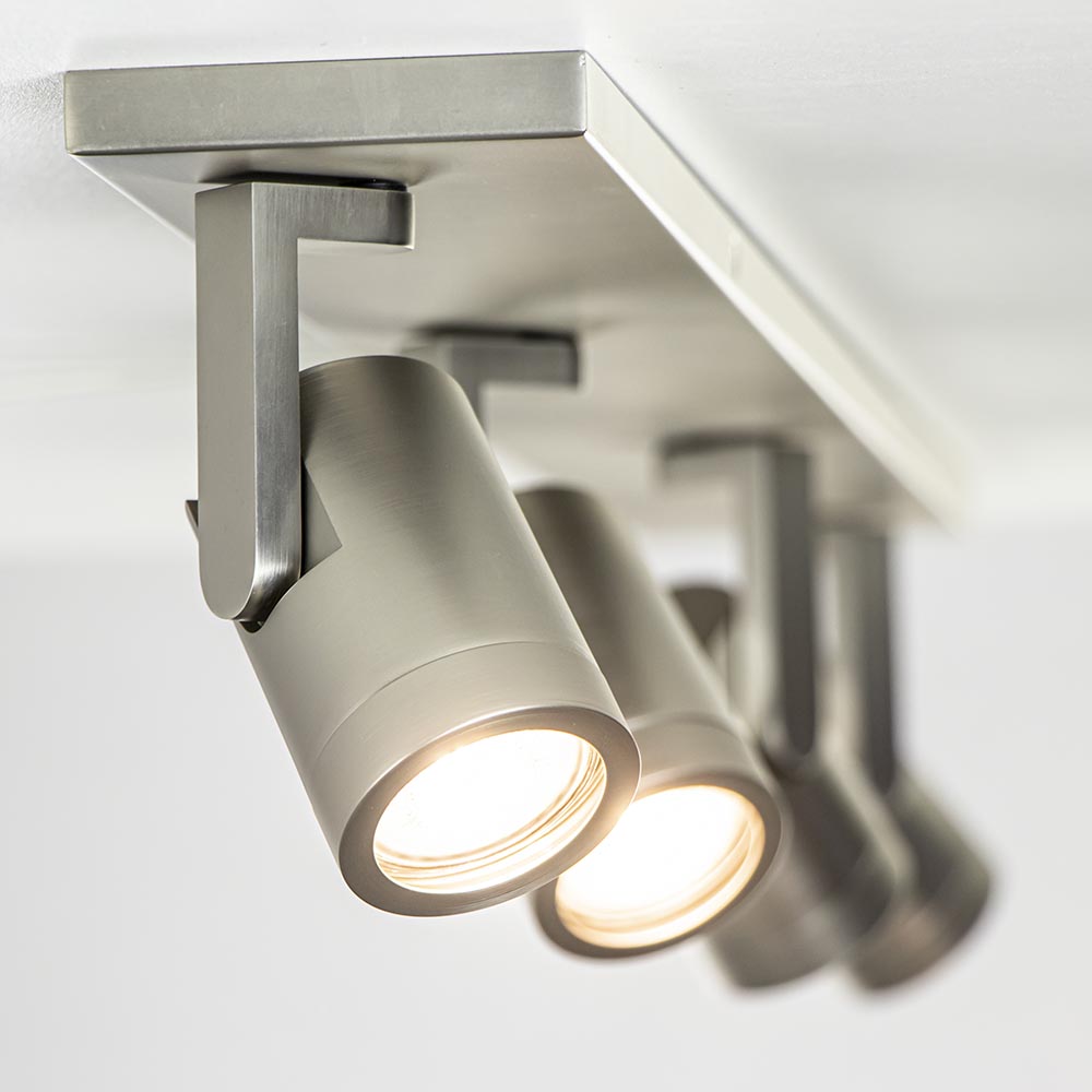 Ideaal voor in een lange smalle kamer of hal. Deze 4-lichts opbouwspot zorgt voor voldoende licht en doordat de spots zowel te kantelen als te draaien zijn, stelt u de spots gemakkelijk en snel naar de juiste richting. De ronde spots zijn voorzien van een afneembare ring zodat de lichtbron gemakkelijk geplaatst kan worden. De metalen kapjes zijn bevestigd op een L-vormig pootje die is bevestigd op de metalen plafondbalk. De plafondspot krijgt door de matte nikkel afwerking een strakke look die mooi past in diverse woonstijlen.