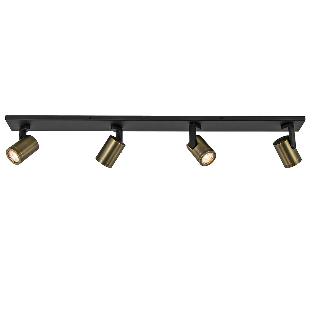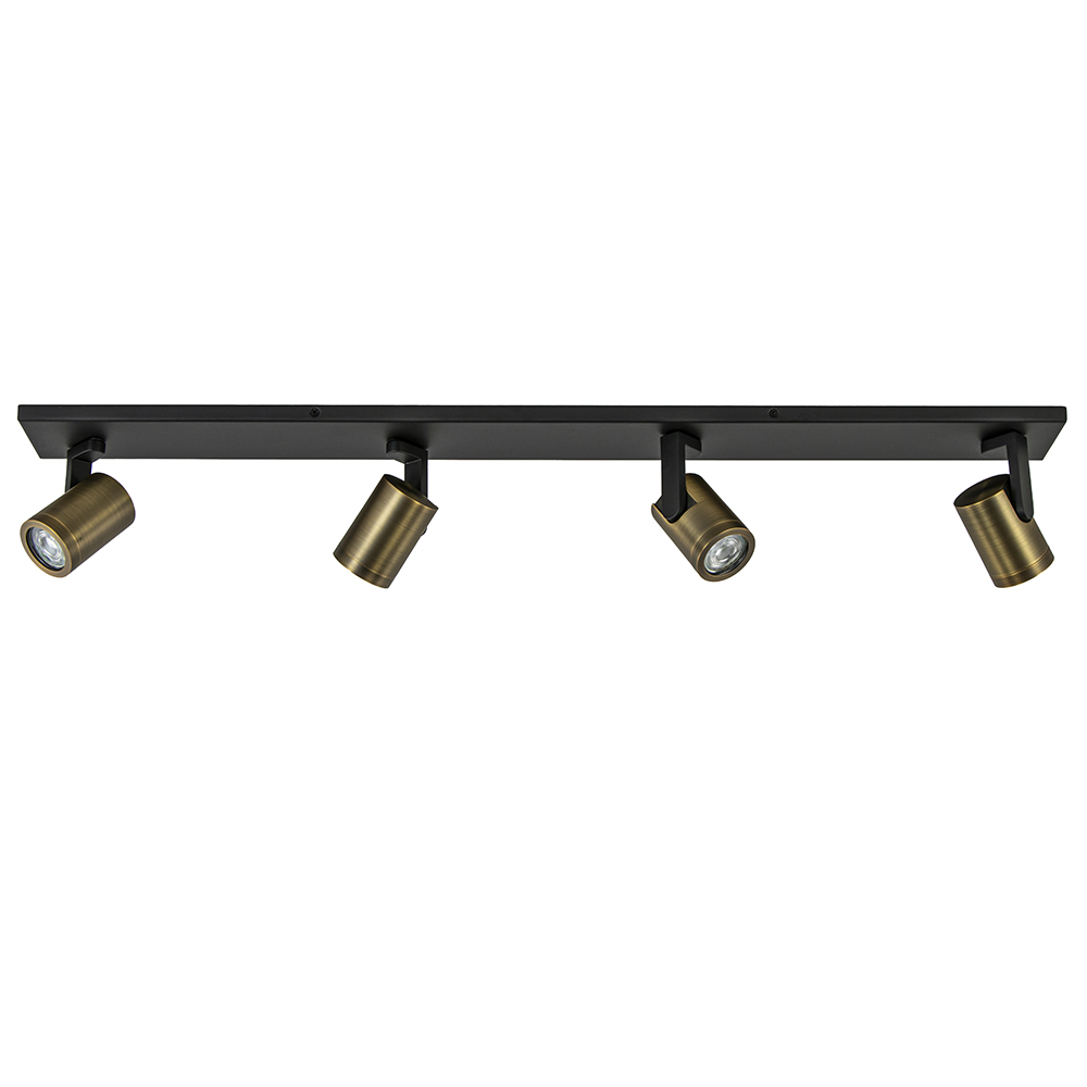 – afm: 91,5×9,5×15 cm – bevestiging: 91,5×9,5×1,5 cm – kappen: Ø6×8,5 cm – metaal – mat zwart/brons – verstelbaar – exclusief lichtbron (4x GU10) – dimbaar (exclusief)