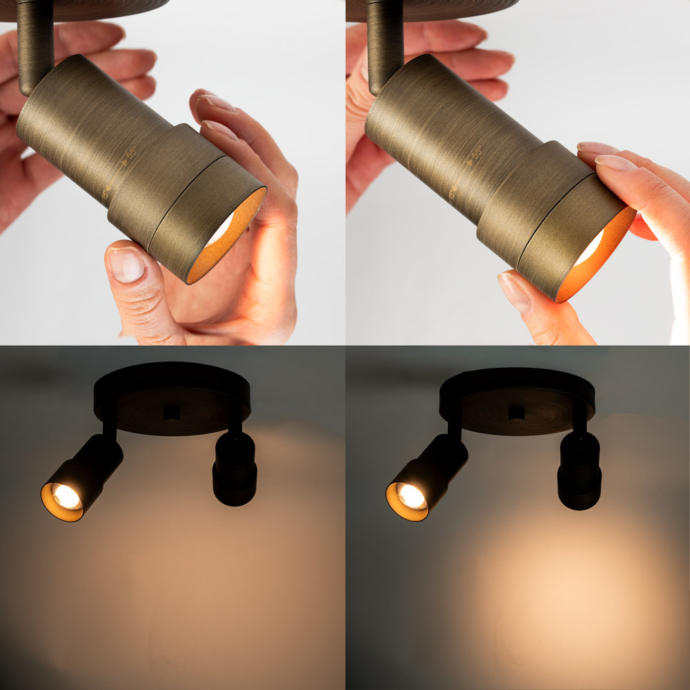 Homepagina / Lampen / Opbouwspots / Plafondspot Liam 2L brons 15-55gr 3-st dim