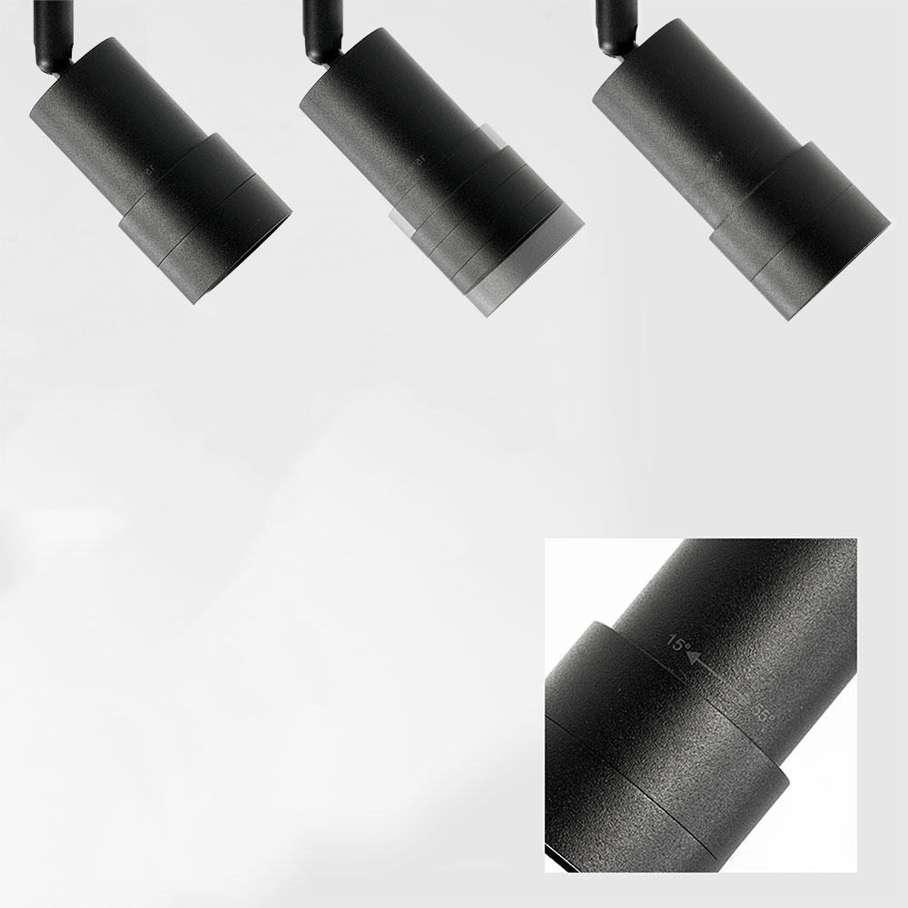 De Liam 3-lichts plafondspot is de ideale oplossing voor wie een ruimte stijlvol én goed wil verlichten. De drie spots zijn individueel verstelbaar. De lichtbundel is variabel instelbaar van 15° tot 55°, waardoor je de bundel naar wens breder of smaller kunt maken