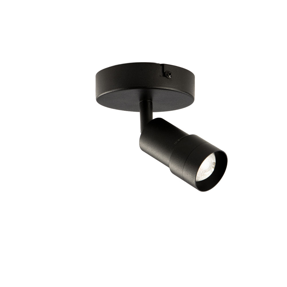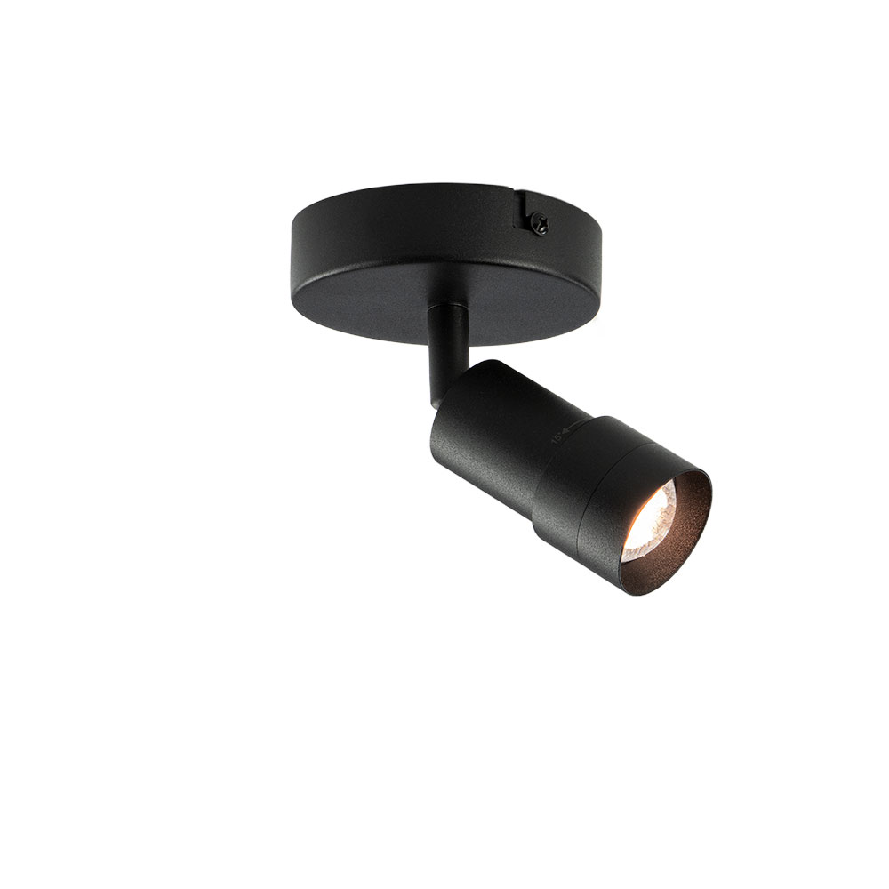 De Liam 1-lichts plafondspot is compact, modern en uiterst functioneel. Met zijn zwarte afwerking en strakke ontwerp past hij perfect in ieder interieur.De lichtbundel is variabel instelbaar van 15° tot 55°, waardoor je de bundel naar wens breder of smaller kunt maken.