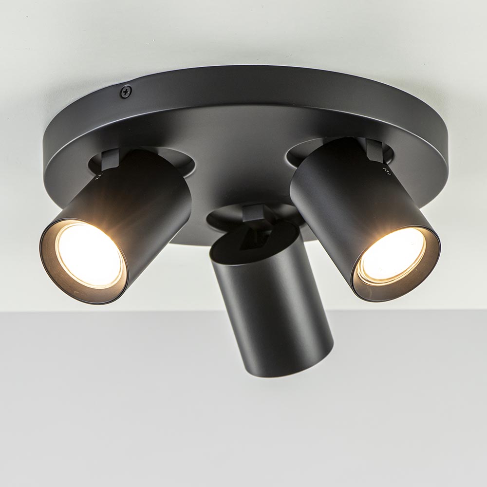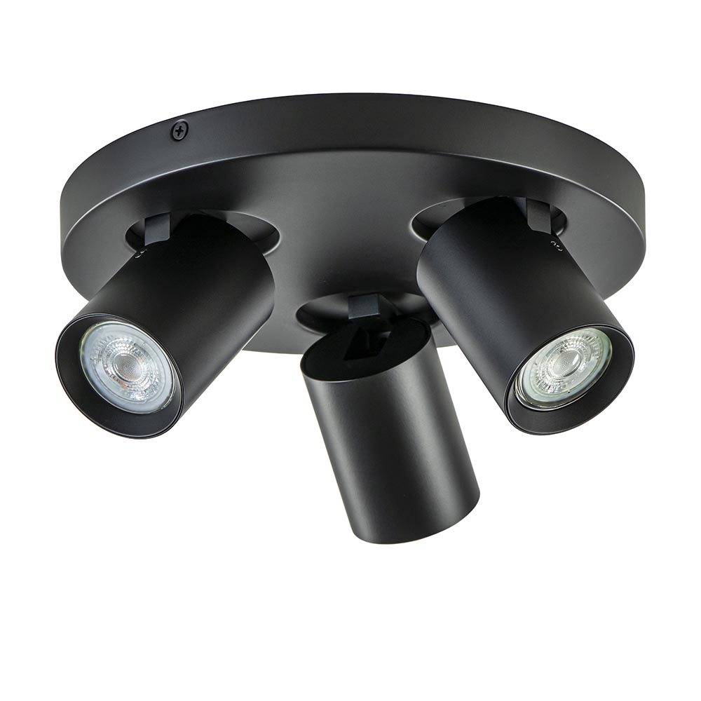 Homepagina / Lampen / Opbouwspots / Plafondspot Oliver 3L rond zwart gu10