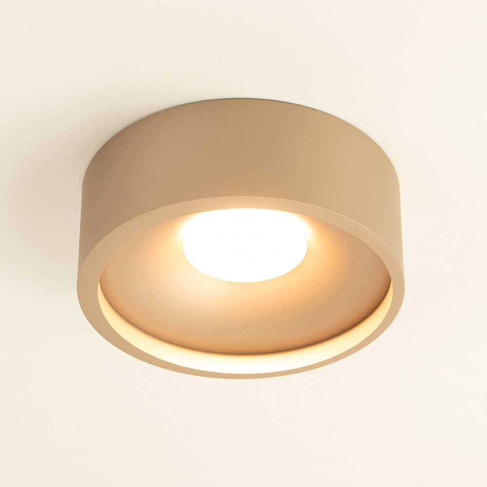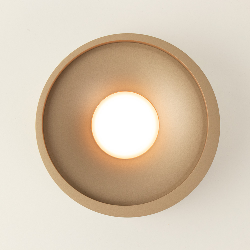 – Afmetingen: Ø14x5cm – Kleur: champagne – Materiaal: metaal – Geïntergreerd LED – Dimbaar: Eterne dimmer (excl.)
