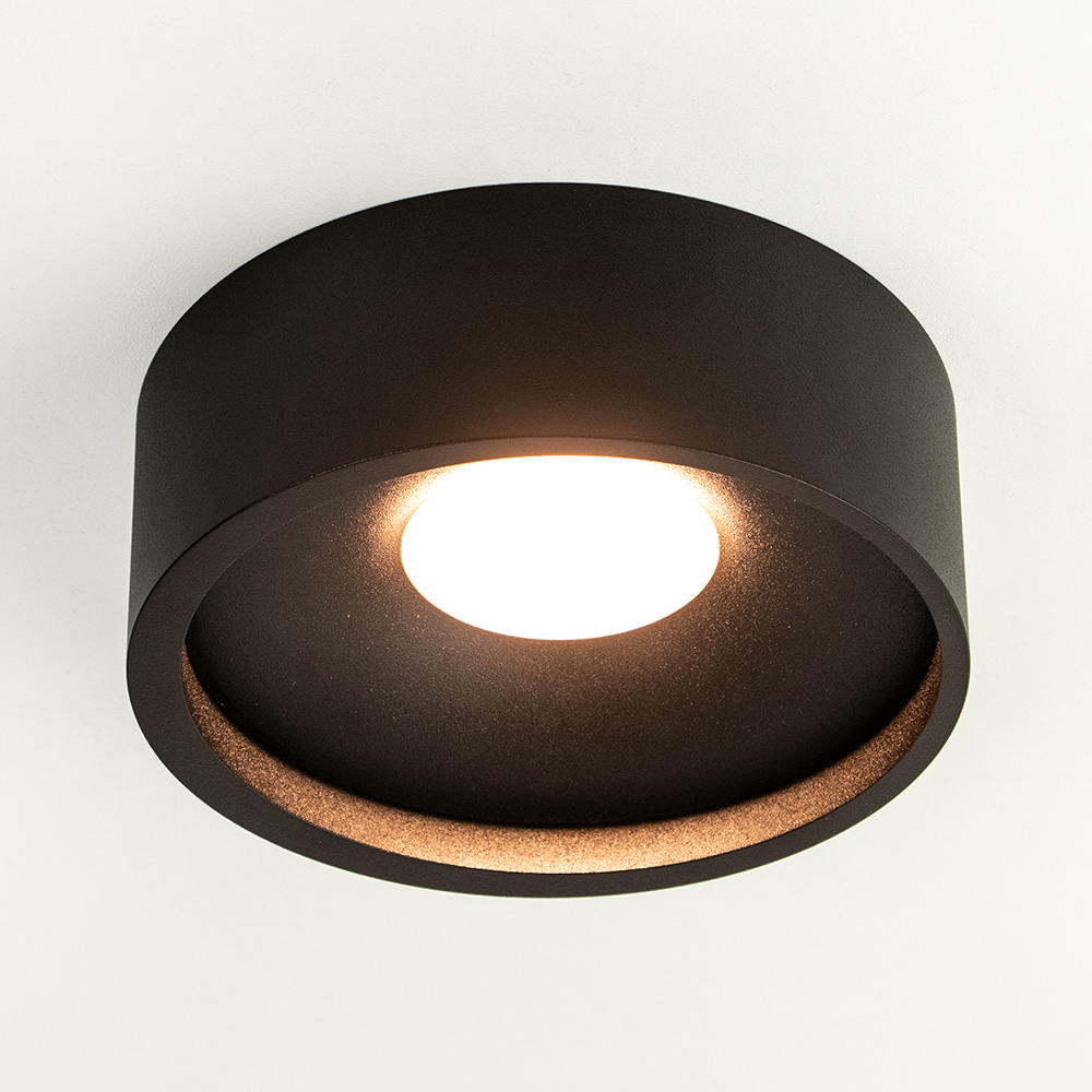 – Afmetingen: Ø14x5cm – Kleur: zwart – Materiaal: metaal – Geïntergreerd LED – Dimbaar: Eterne dimmer (excl.)