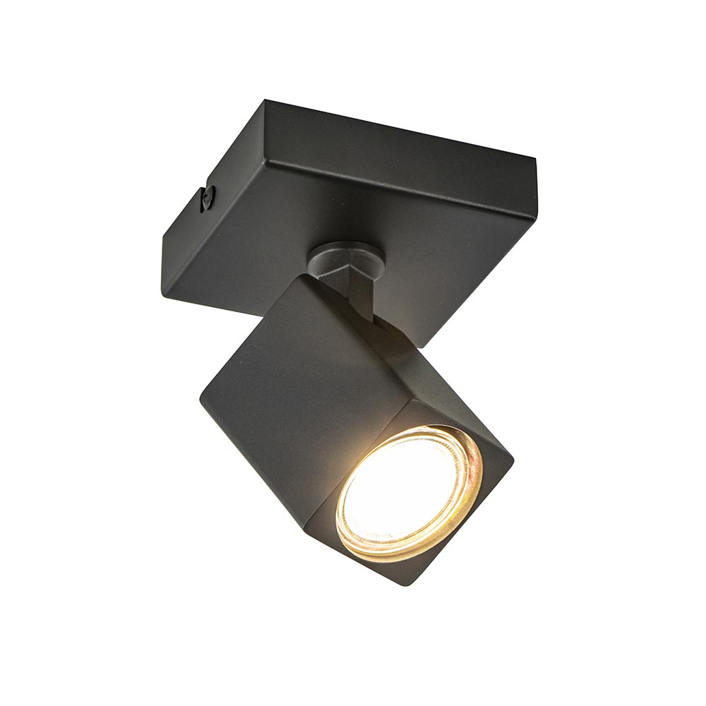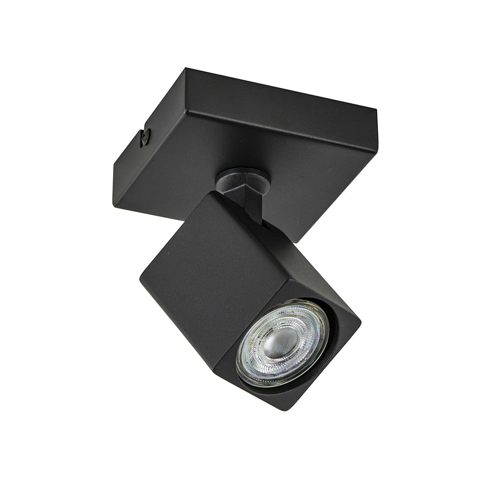 Ideaal voor het uitlichten van een donkere hoek, kunstobject of gewoon als extra sfeer in de ruimte. Deze kleine opbouwspot kan het allemaal. De spot is bevestigd op een vierkante plafondplaat en is volledig naar wens te verstellen door de spot te draaien en/of te kantelen. De zwarte spot wordt geleverd exclusief lichtbron (GU10). Deze enkele spot kan zowel dienen als plafond- en wandlamp.